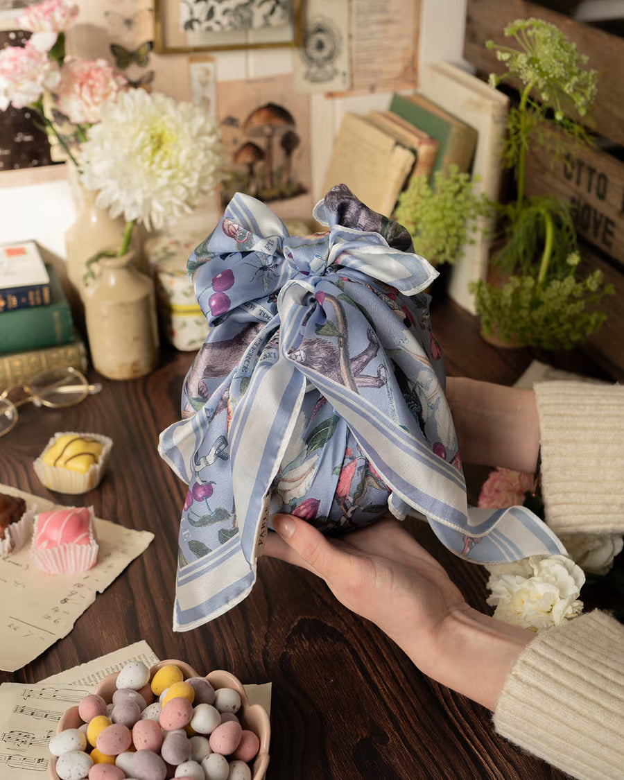 We love this 'forever' easter gift, chocolate comes and goes but silk scarves are a timeless piece and they serve us all year long. We especially love this gift because it is eco-friendly and low waste. Your wrapping material is going to be reused and is designed to be totally wearable. Environmentally and wardrobe friendly!