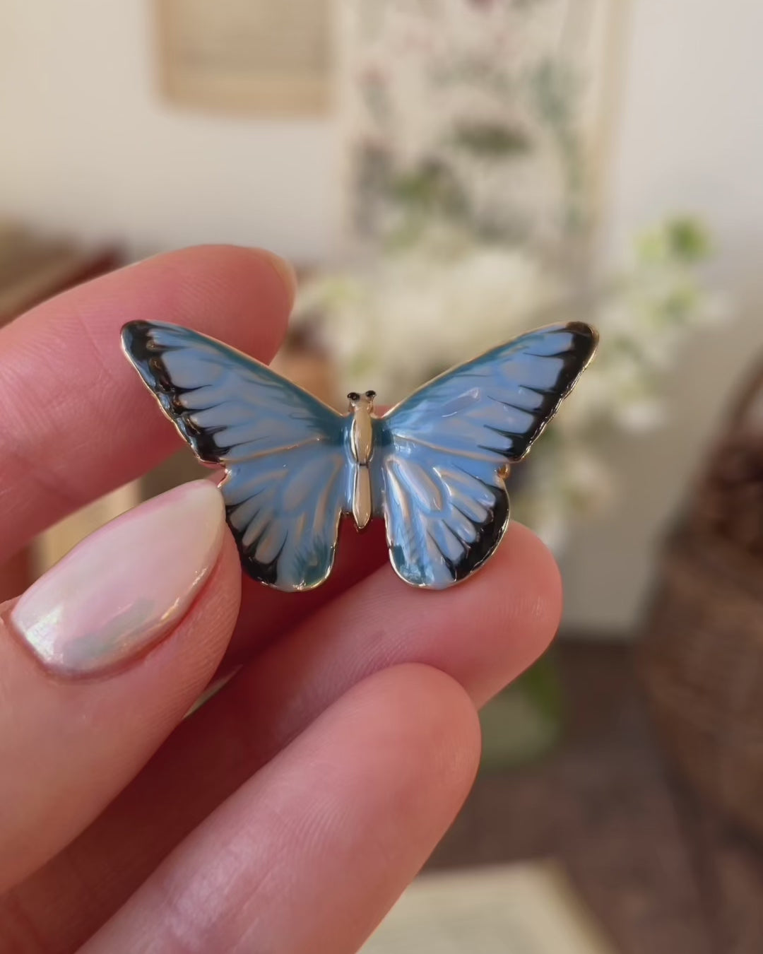 Enamel Blue Butterfly Brooch by Fable England