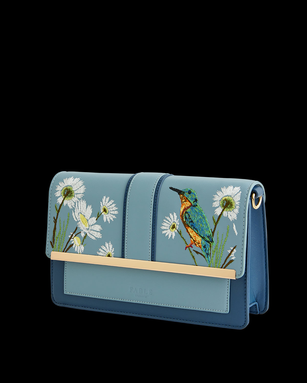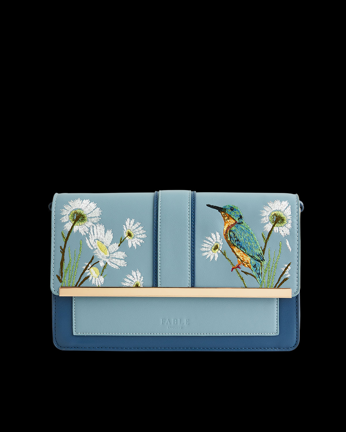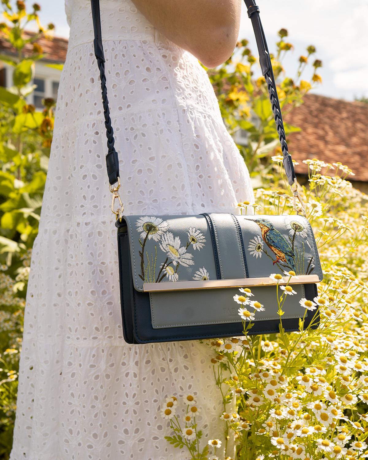 Bestickte Eisvogel-Umhängetasche Blau