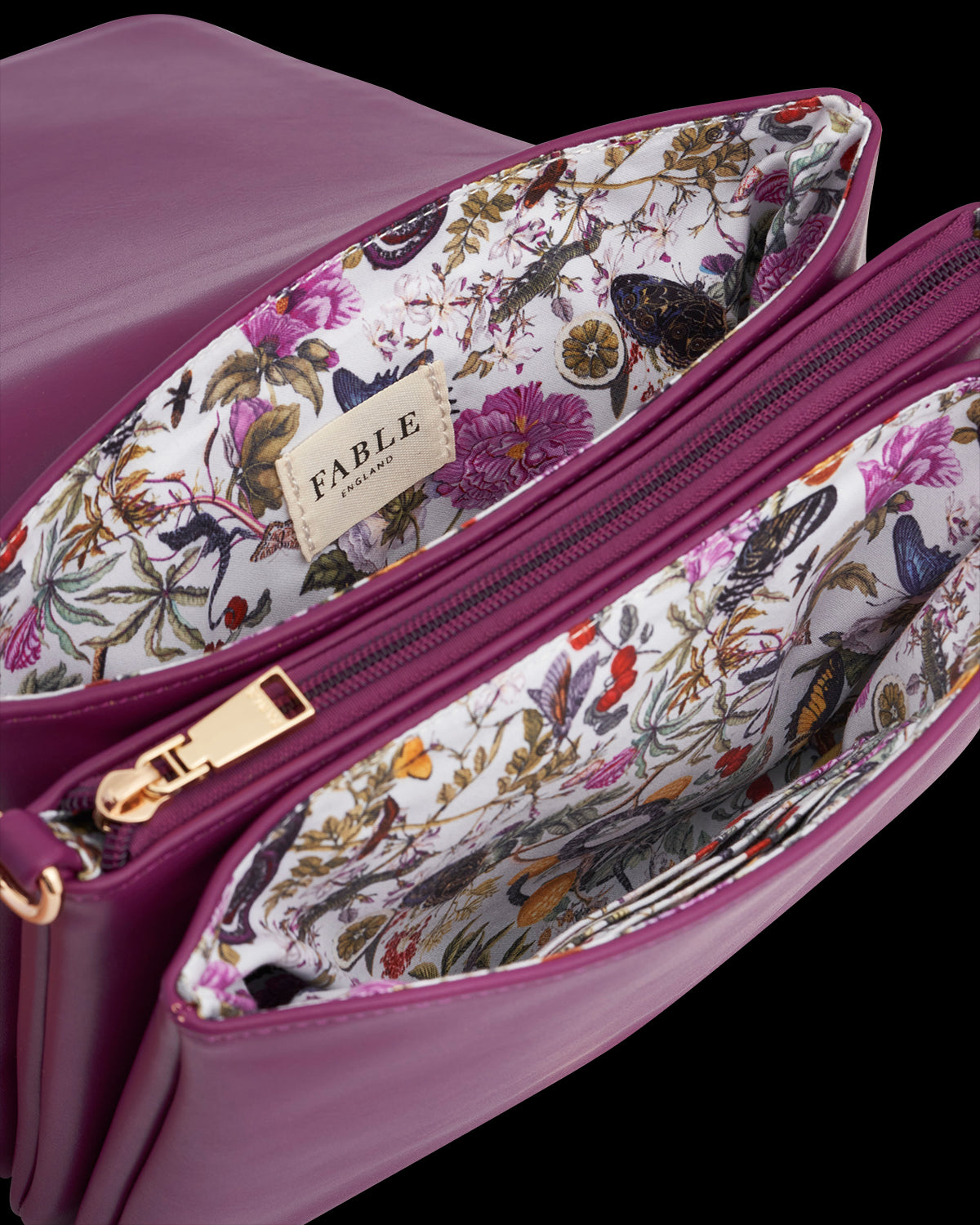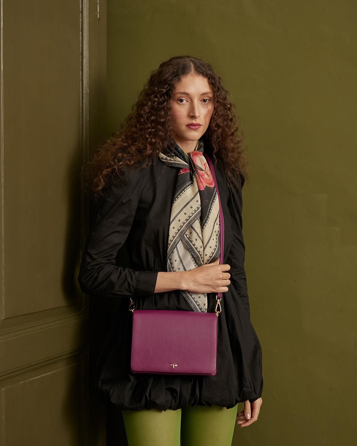Umhänge-Tasche Blumen in Pflaumenfarbe
