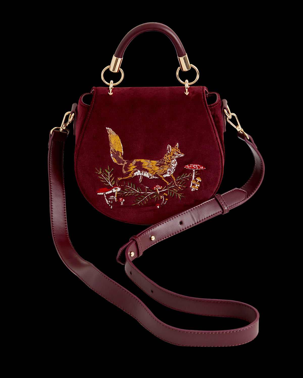 Fuchs & Pilz bestickte Satteltasche-Johannisbeer