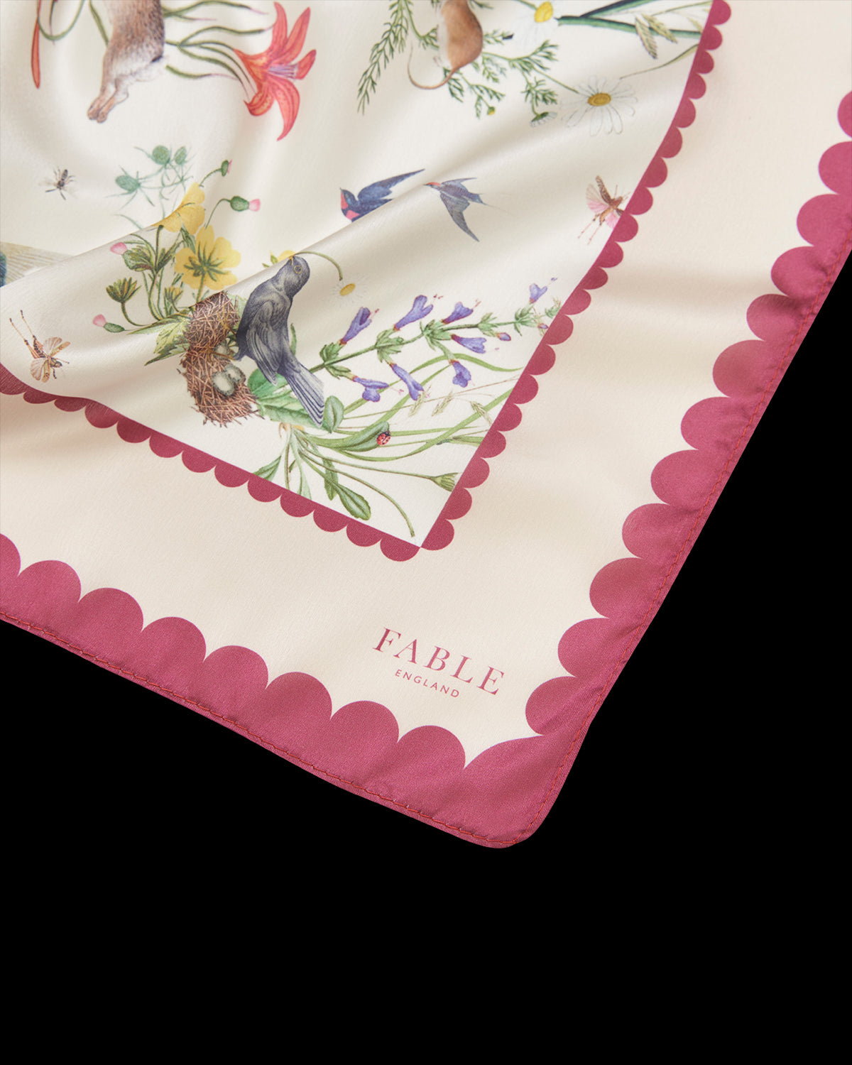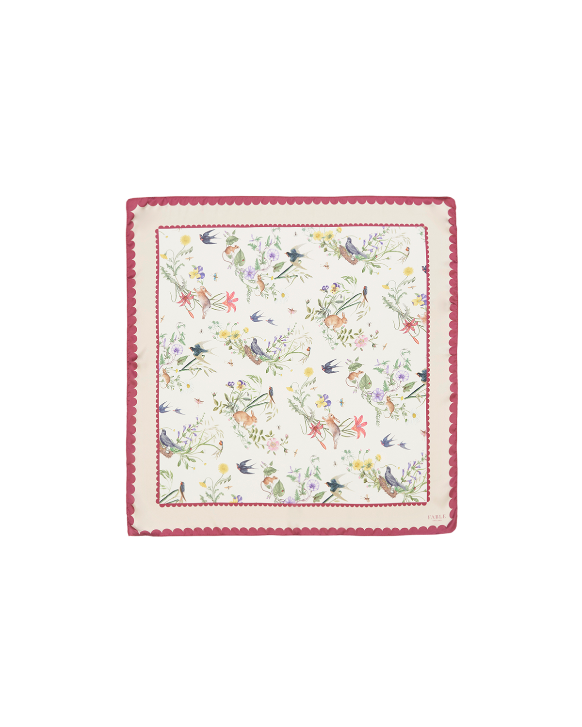 Schwalben schwirren, Hasen hoppeln, Amseln schmiegen sich an ihr freudiges Versprechen von Nachwuchs. Neugierige Kreaturen versammeln sich, um das neue Leben zu feiern, umgeben von üppigen, kühnen Blüten, die sich alle in Harmonie freuen und verkünden, dass der Frühling in der Luft liegt.
