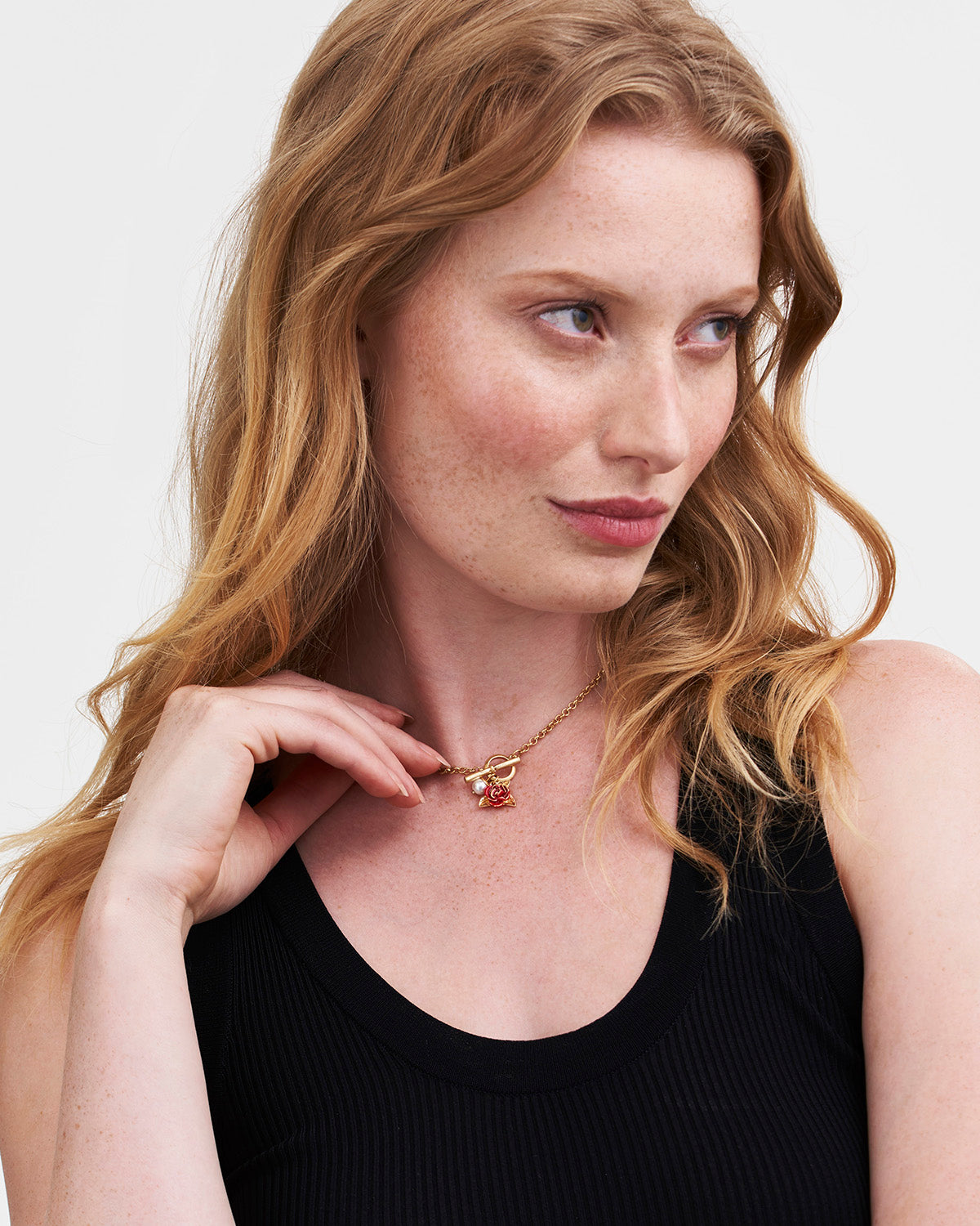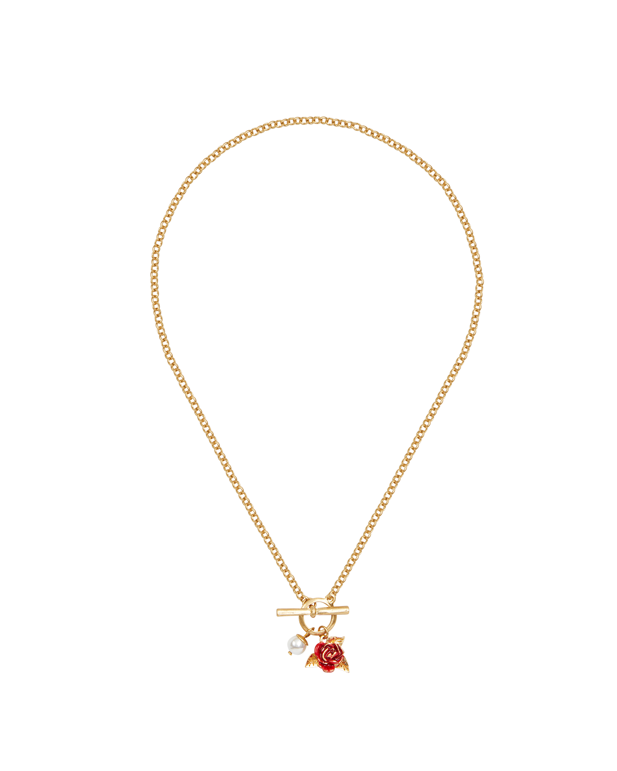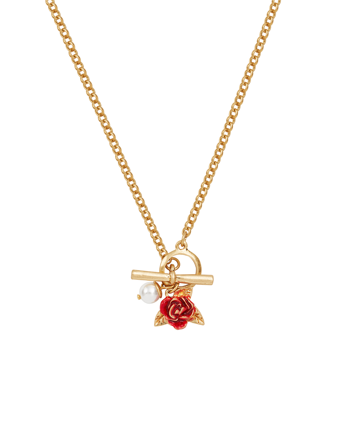 Hand-painted enamel rose charm paired with a soft pearl drop