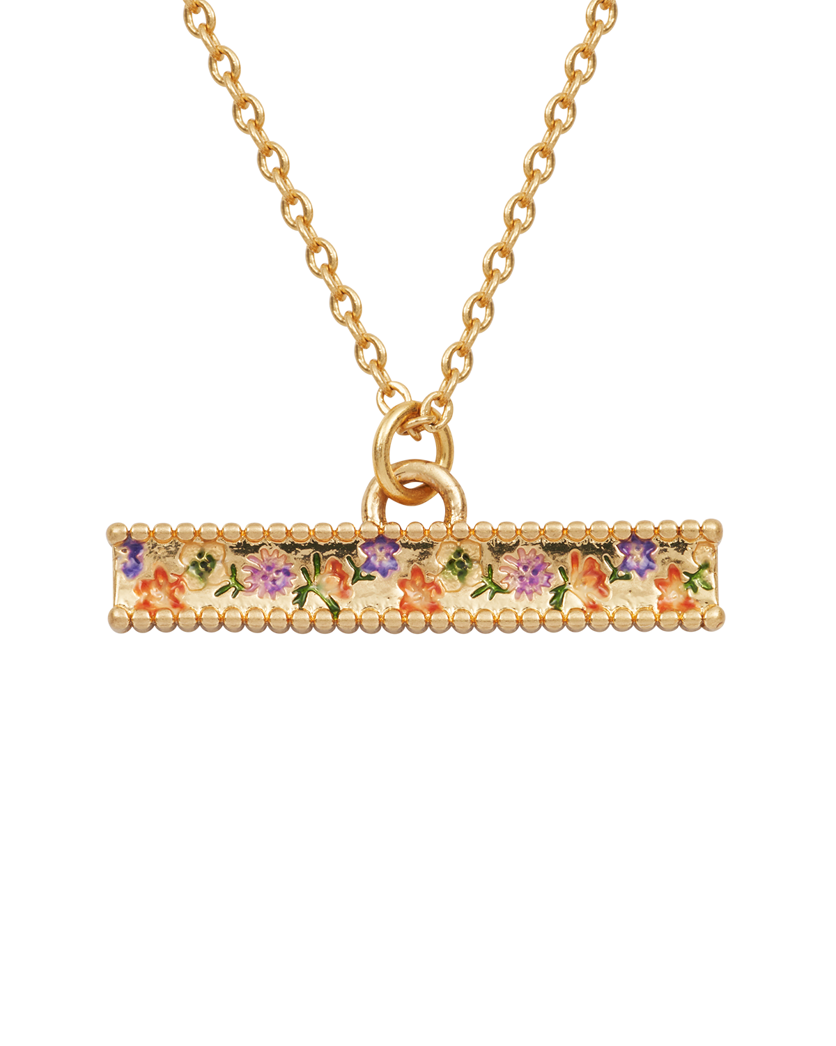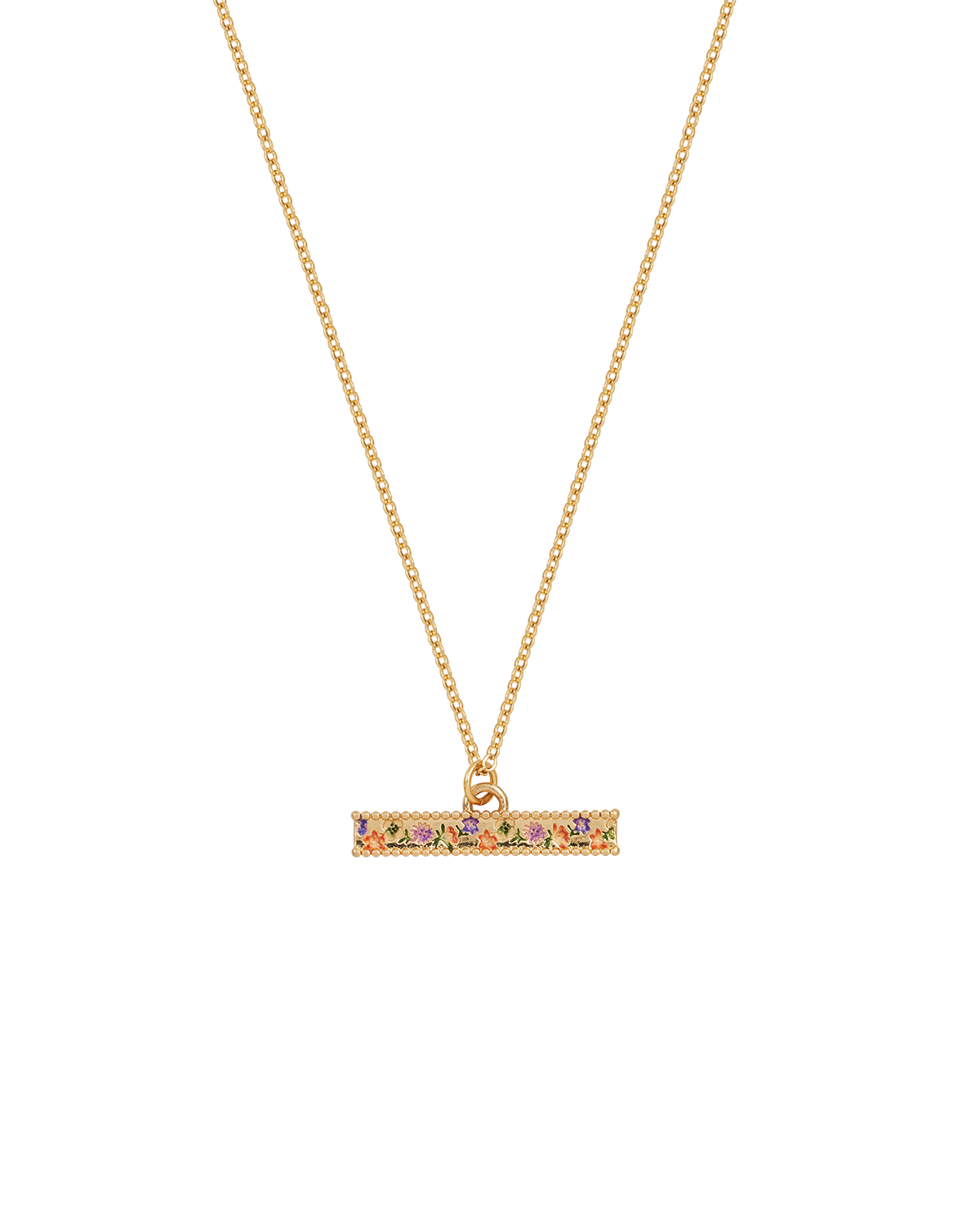 • Materials: 22ct worn gold-plated brass, zinc alloy, enamel