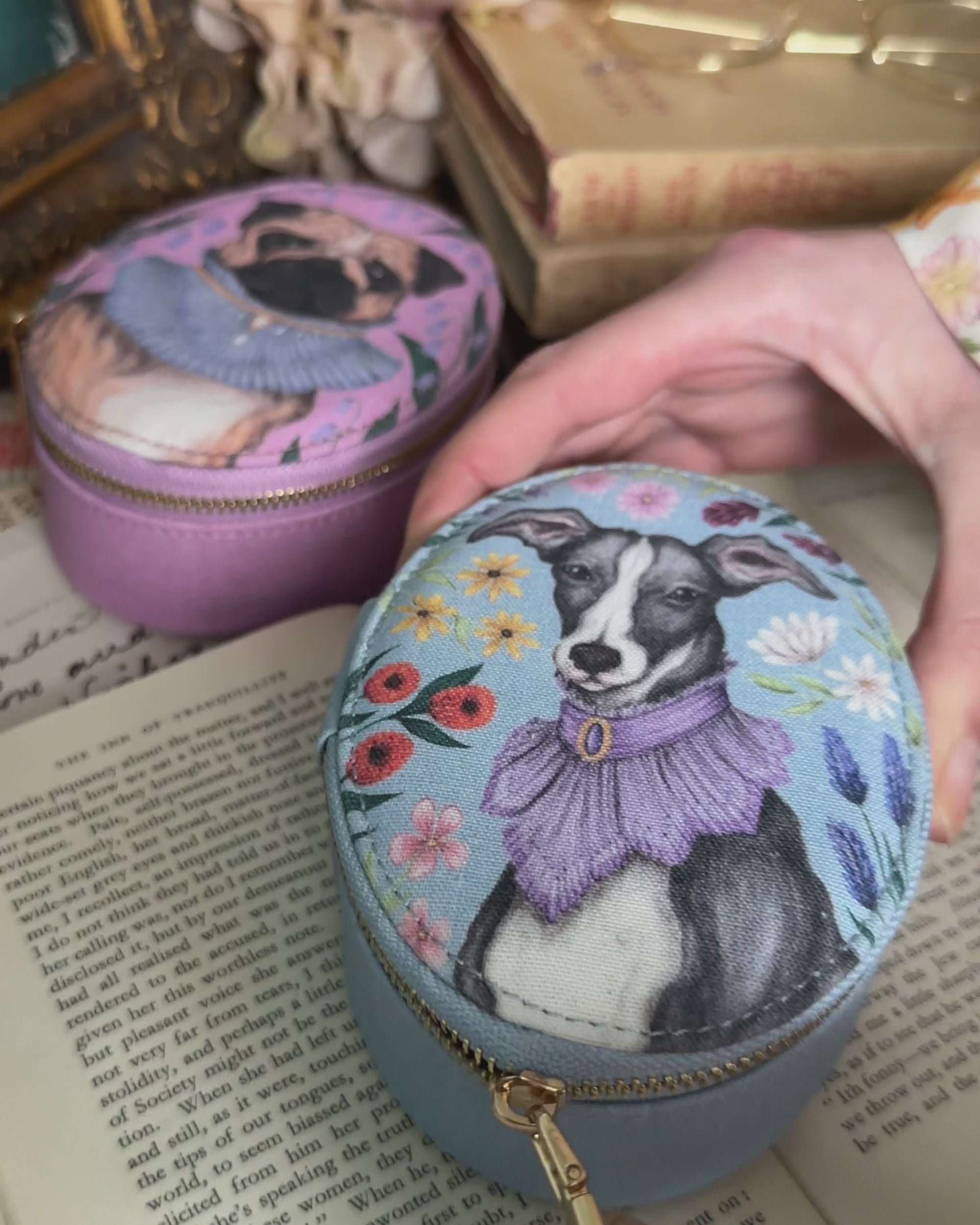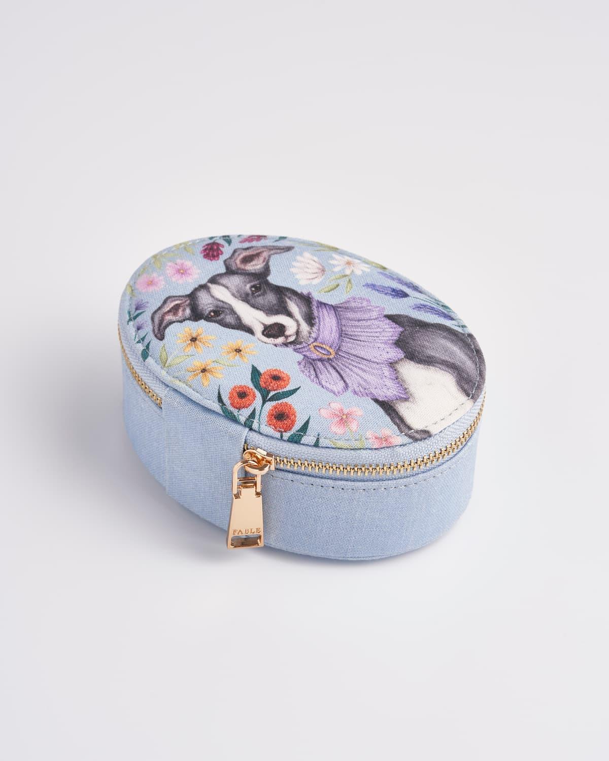 Catherine Rowe Pet Portraits Whippet Blue Oval Jewelry Box