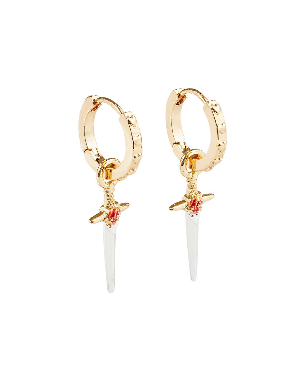 Gold Rose & Dagger Huggie Earrings