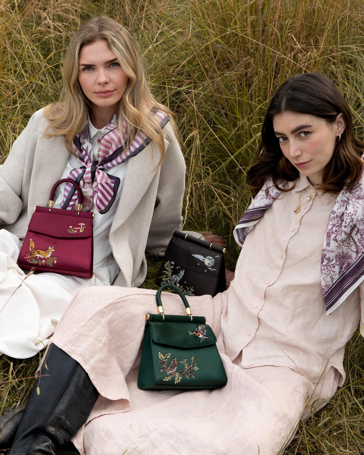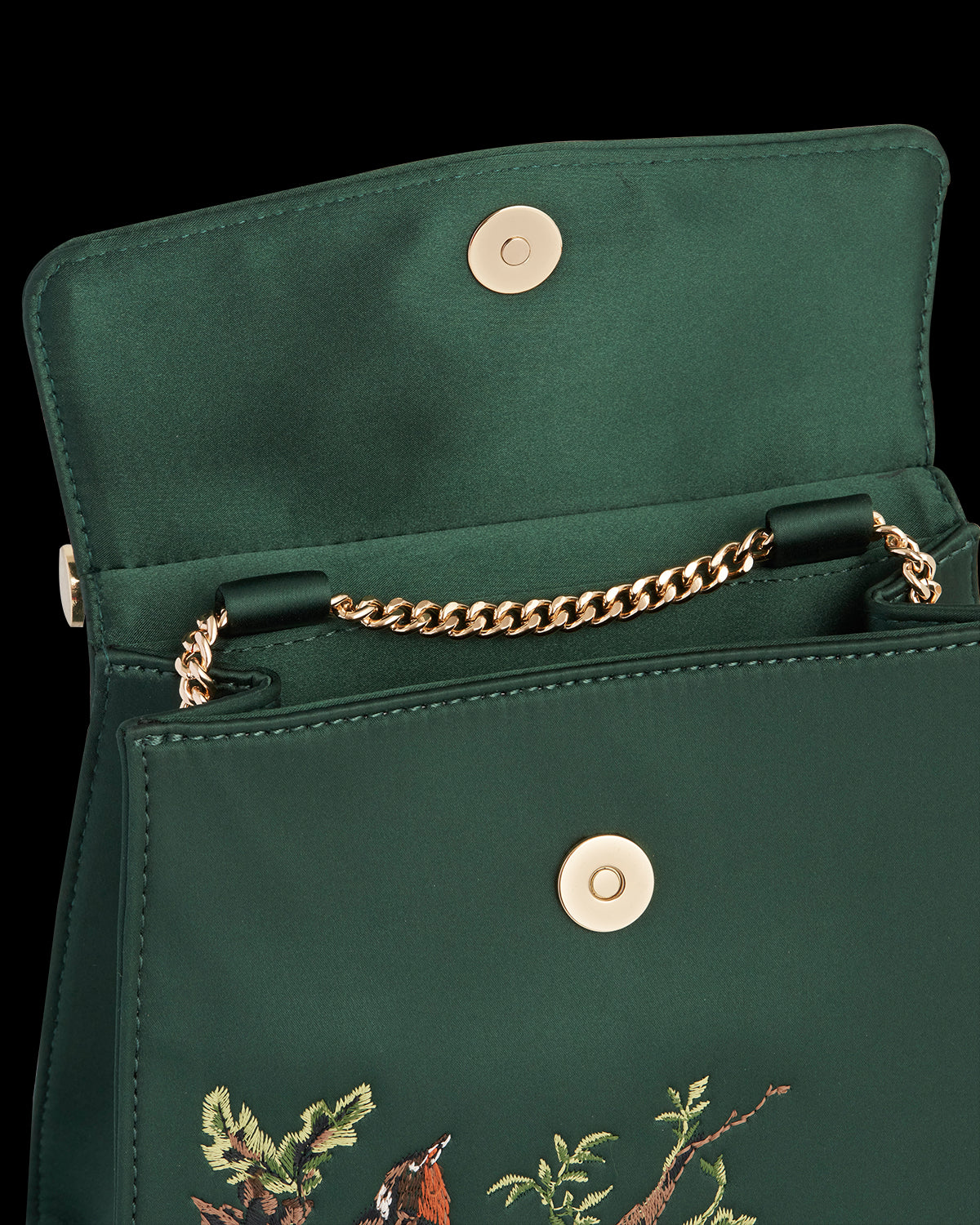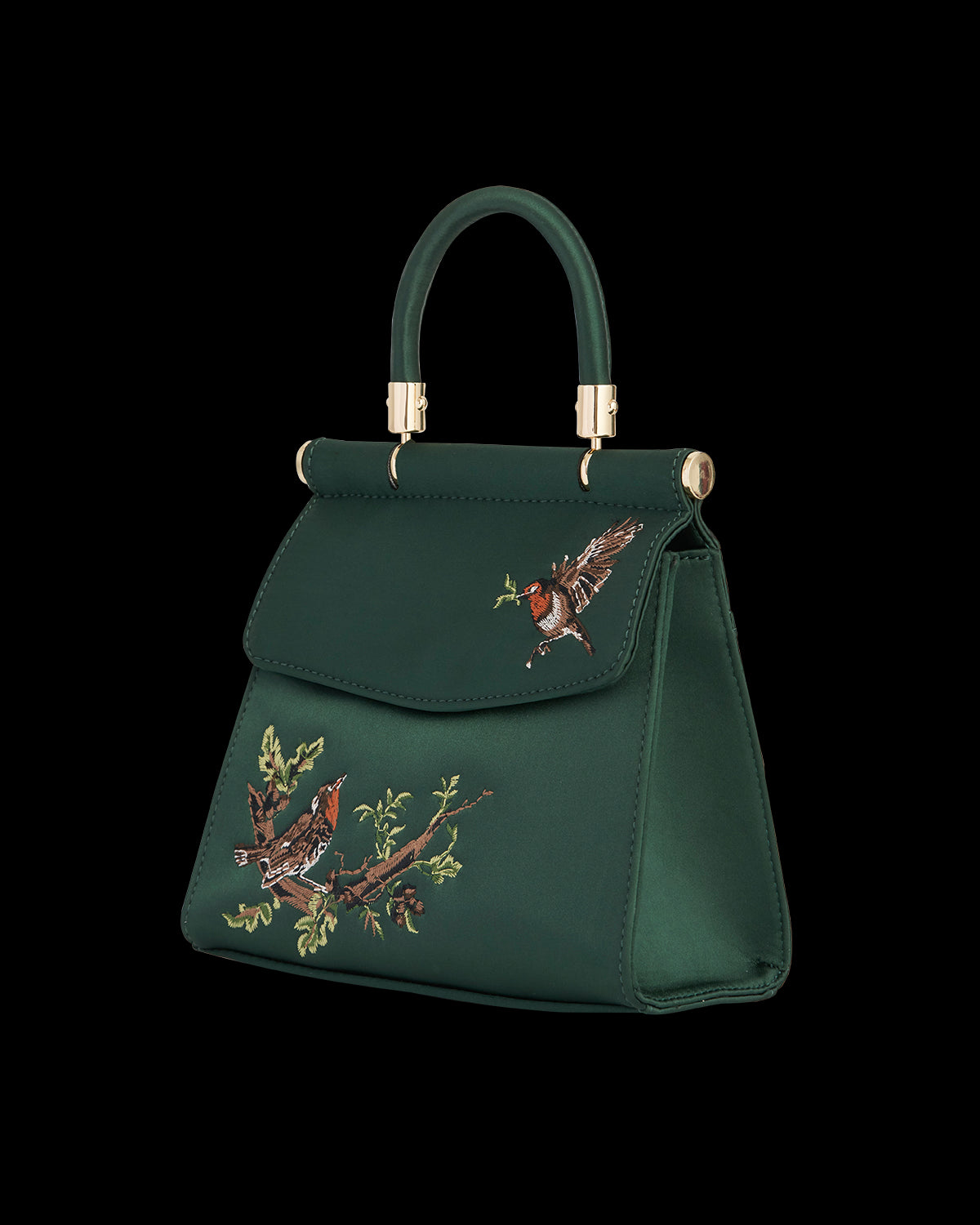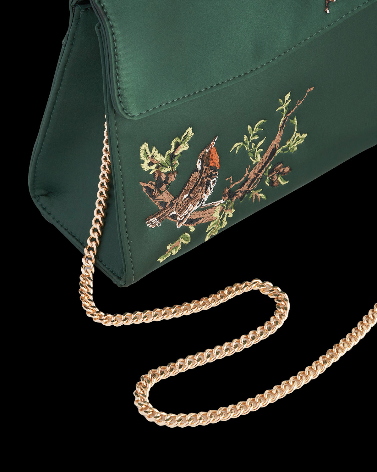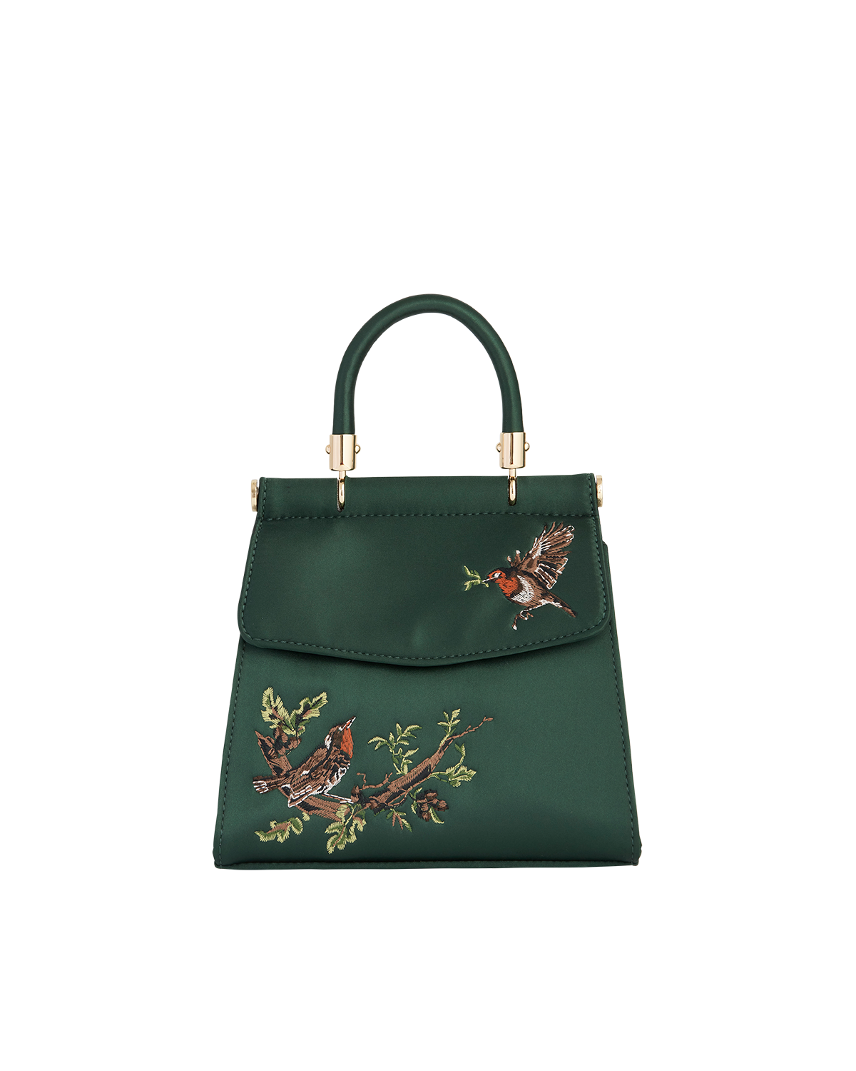 Bolso Tote Satén Bordado Petirrojos Enamorados - Verde