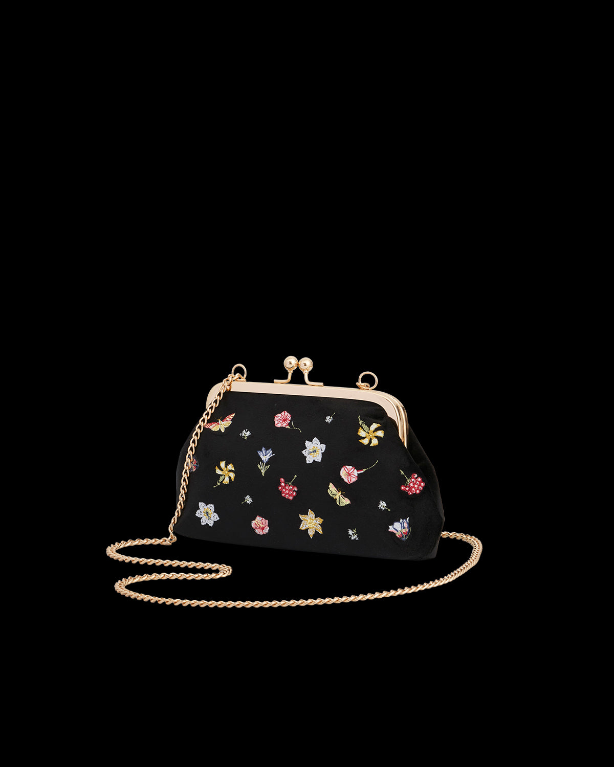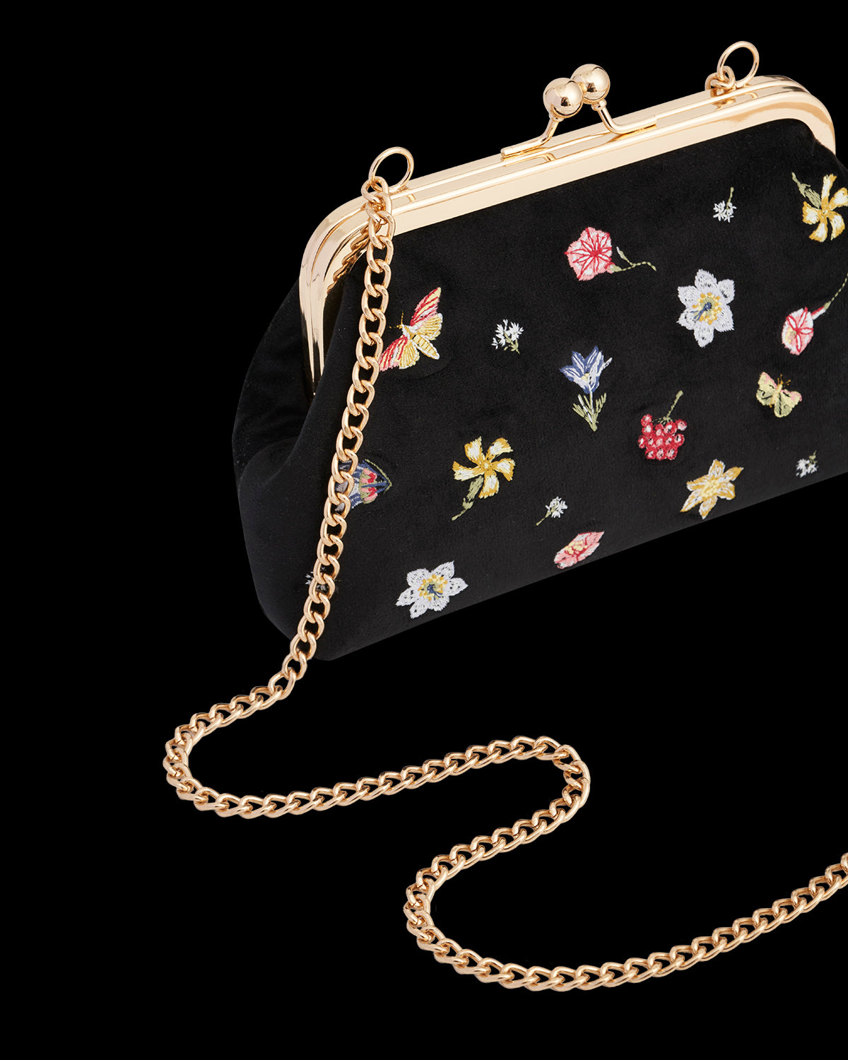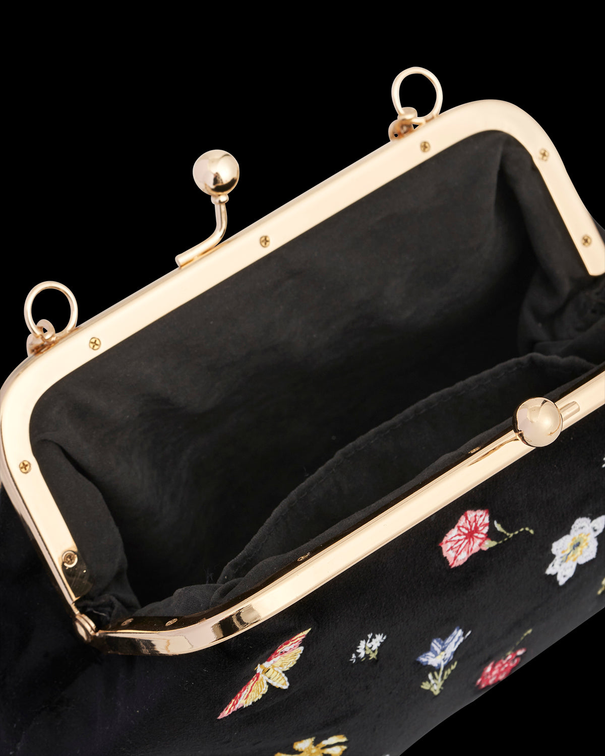 Pochette à fleurs en velours brodé noir