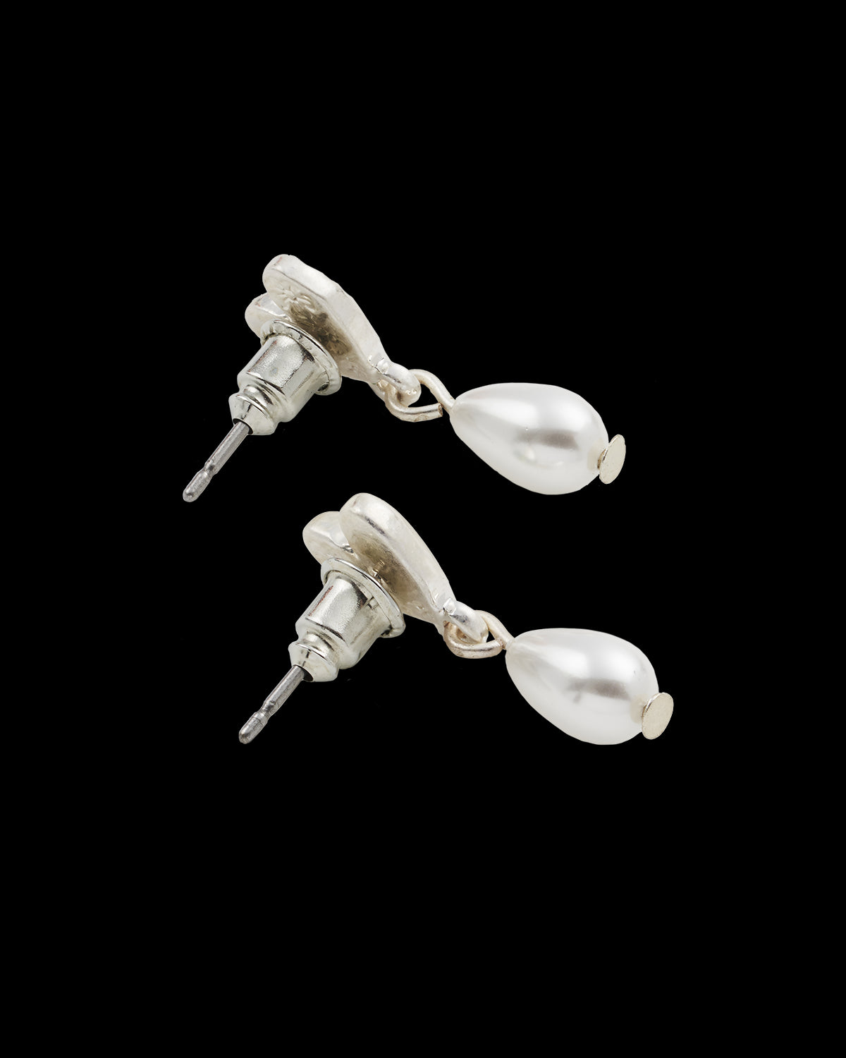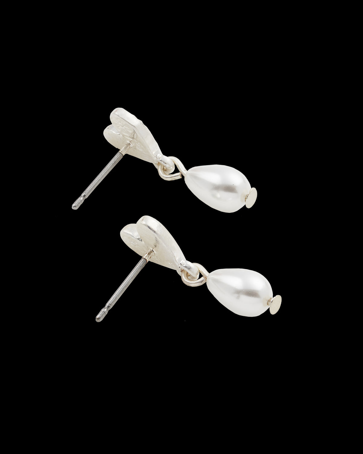 Boucles d'oreilles argentées Myosotis, perle & cœur