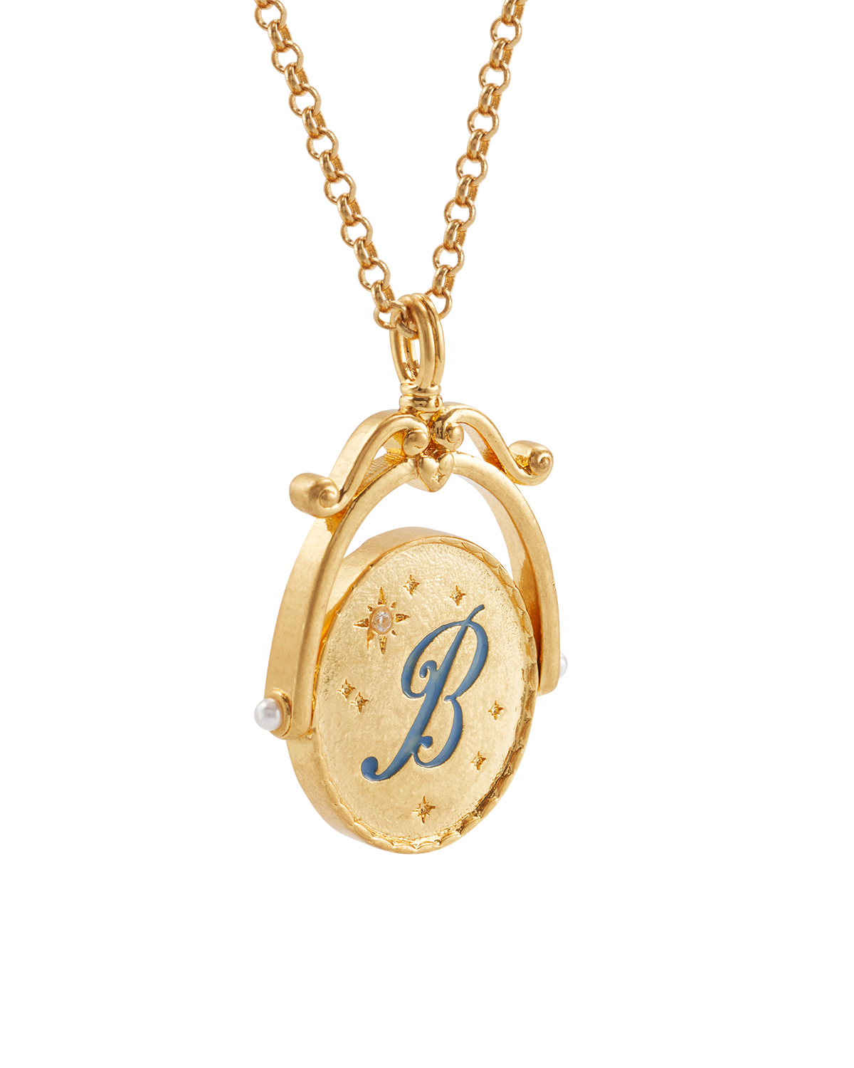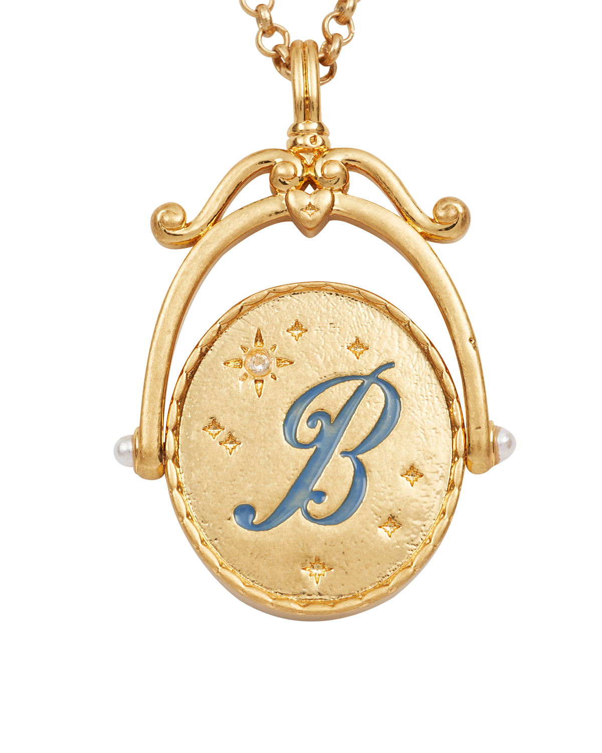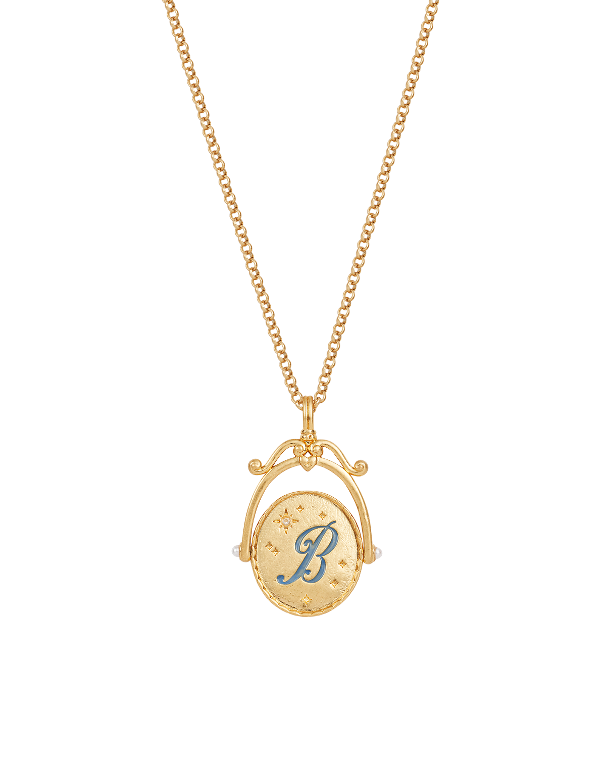 Ciondolo girevole con iniziale "B" e Campanula blu