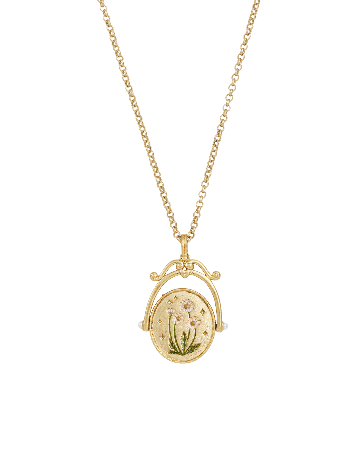 Ciondolo girevole con iniziale "D" e margherita