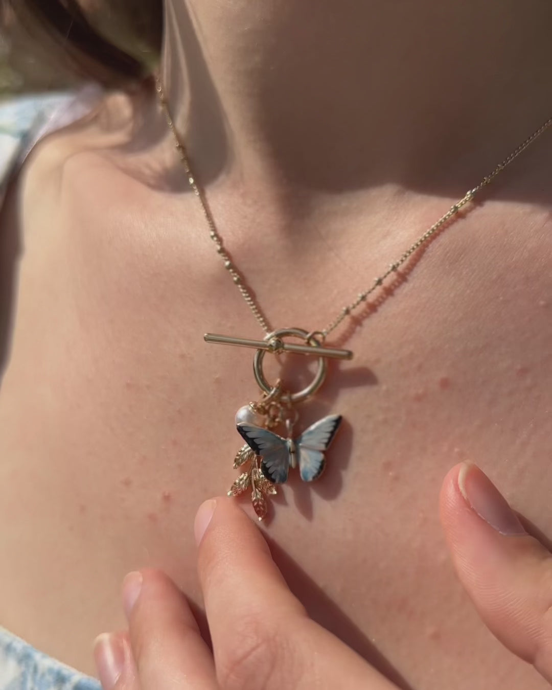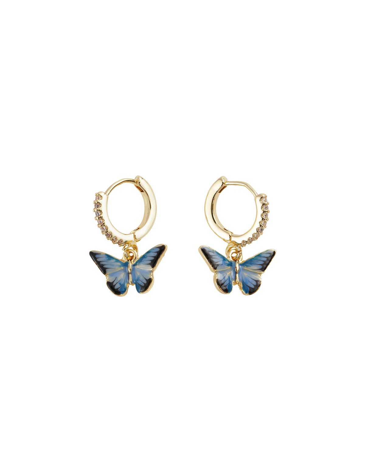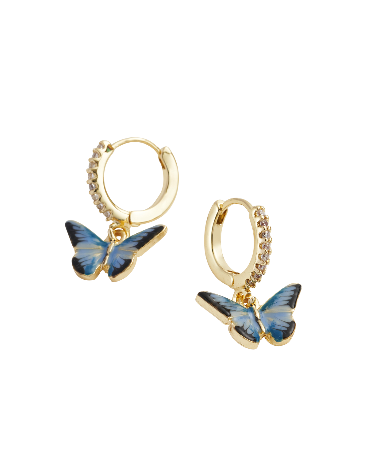 Enamel Blue Butterfly Huggie Earrings by Fable England