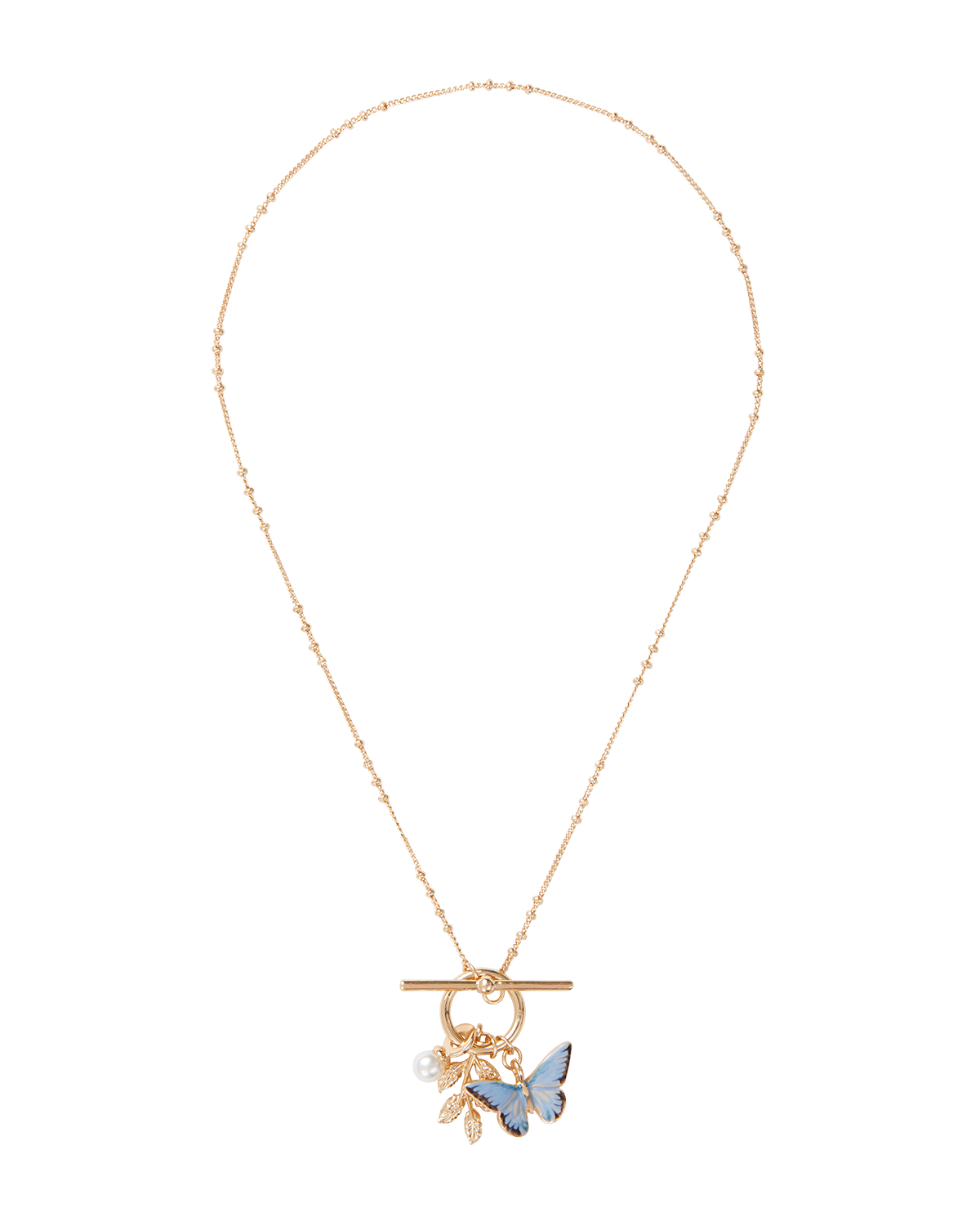 Enamel Blue Butterfly & Leaf Charm Necklace by Fable England