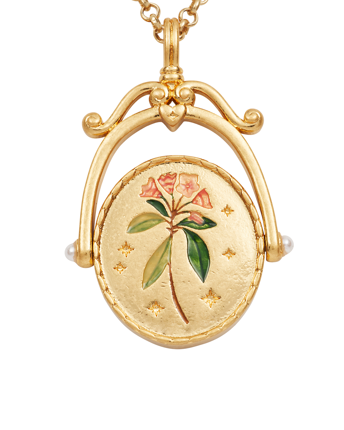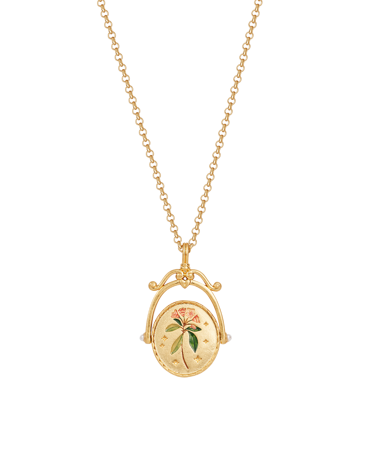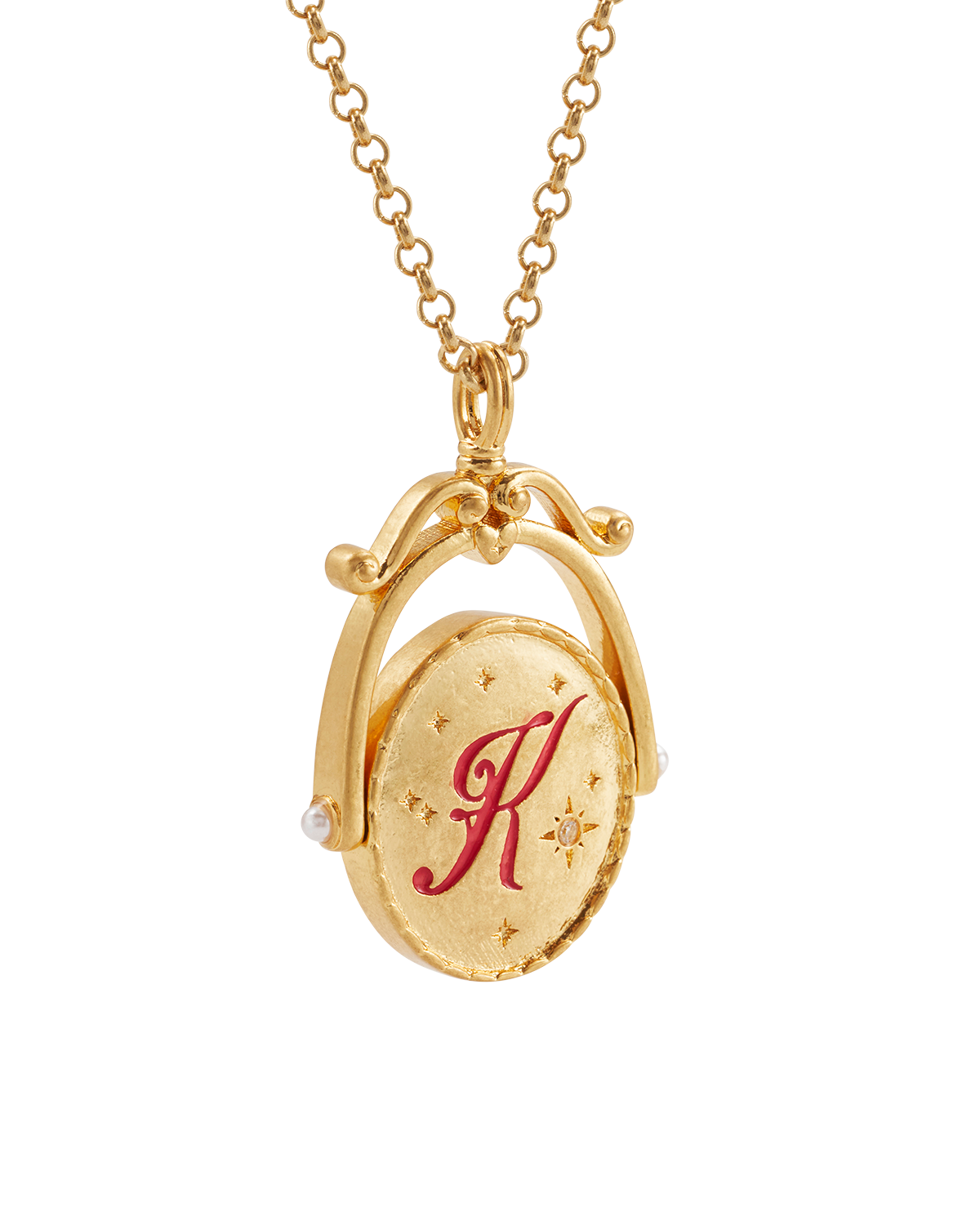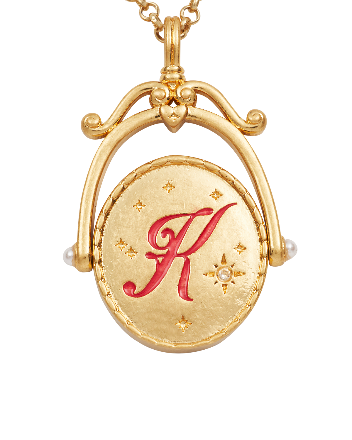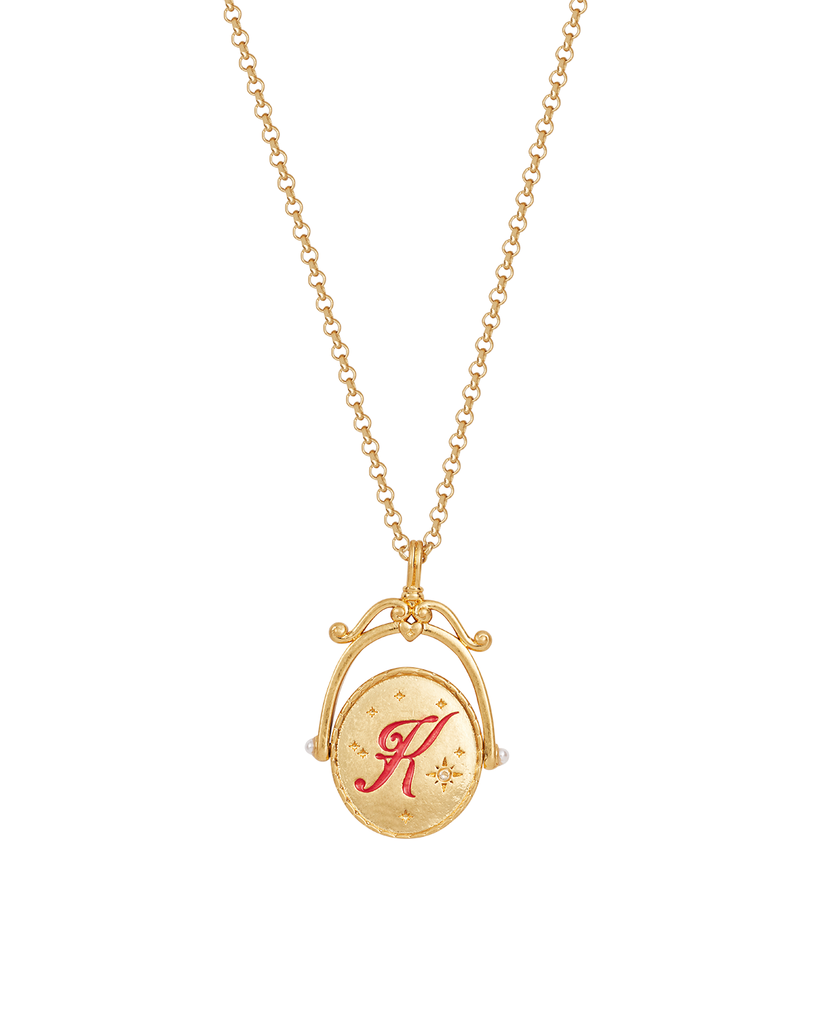 Ciondolo girevole con iniziale "K" e fiore di Kalmia