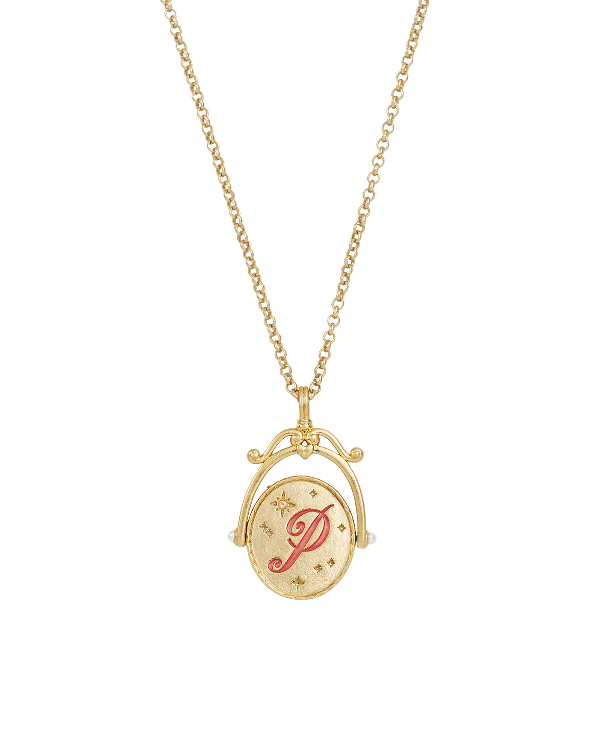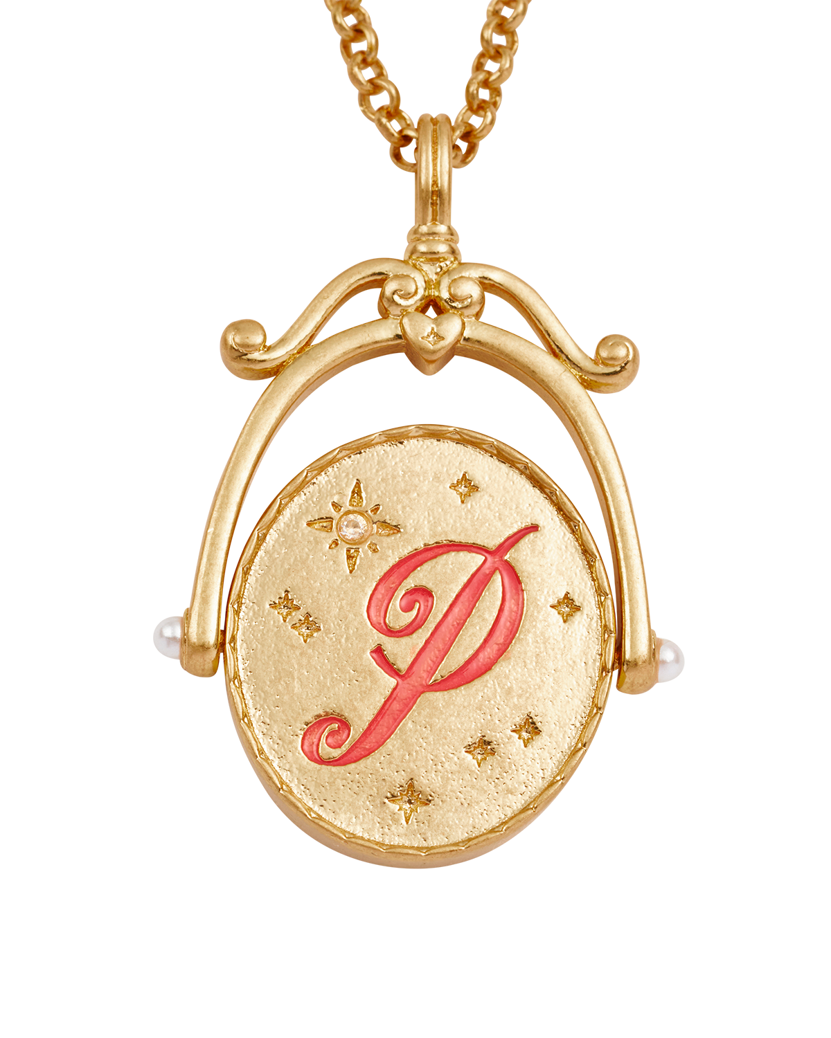 Materiali: ottone placcato oro 22ct, smalto, zirconi bianchi, perla