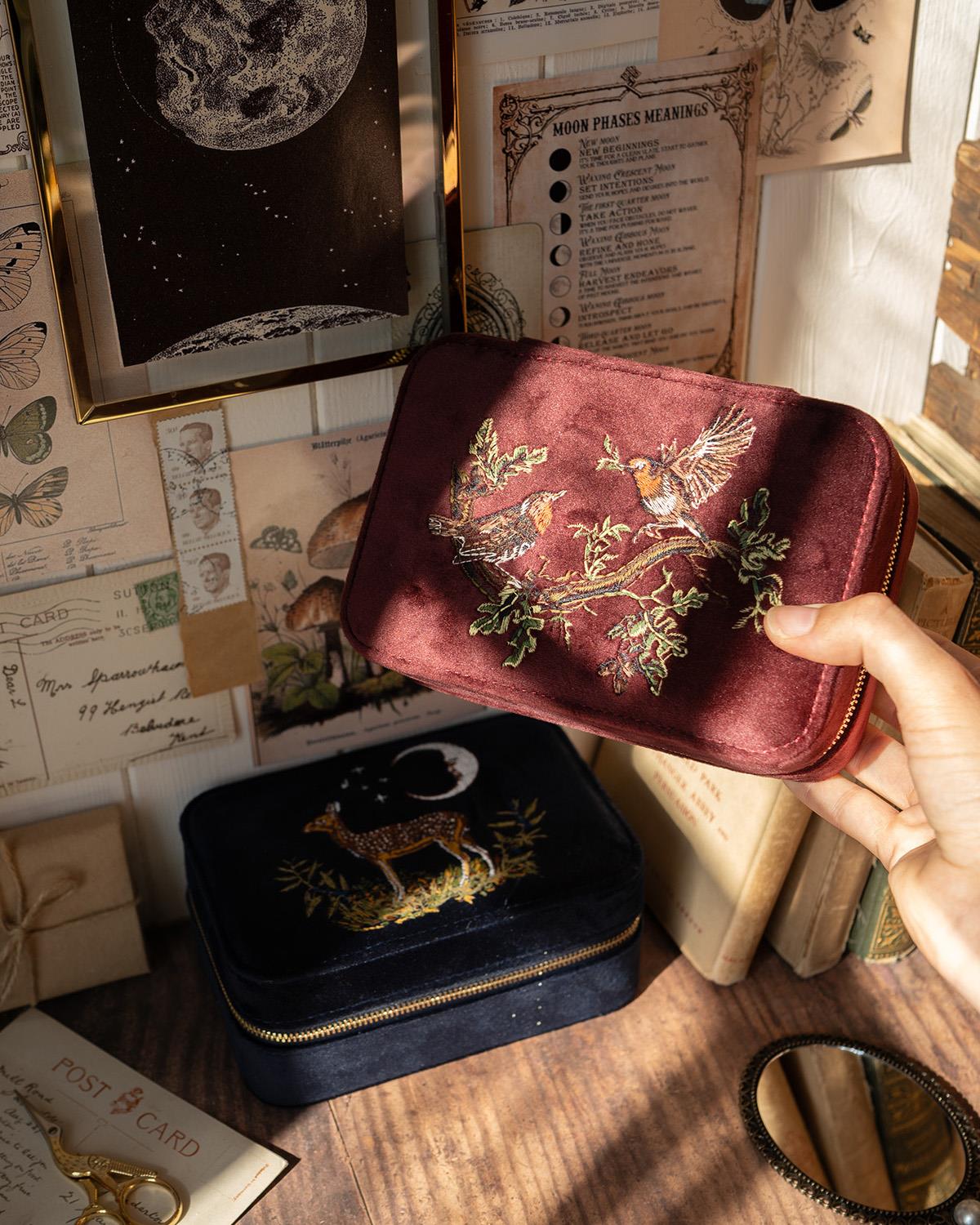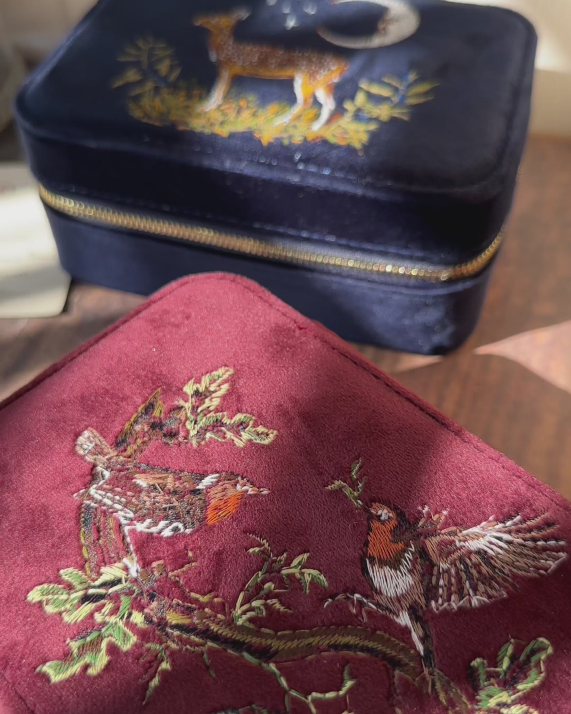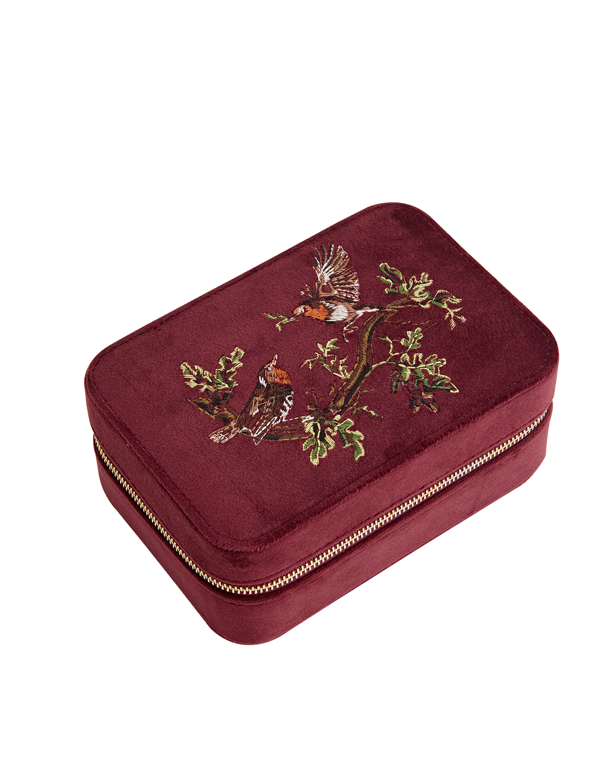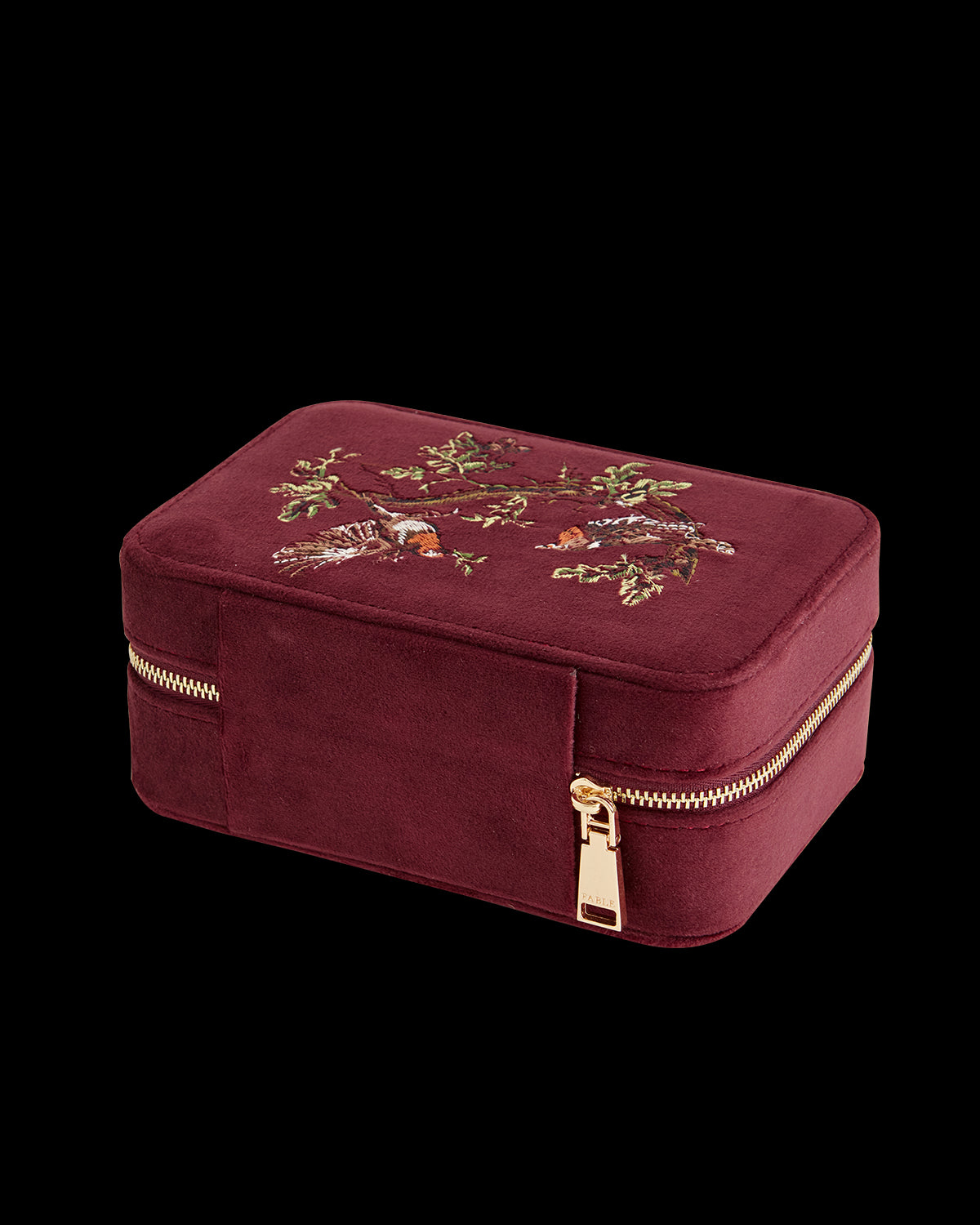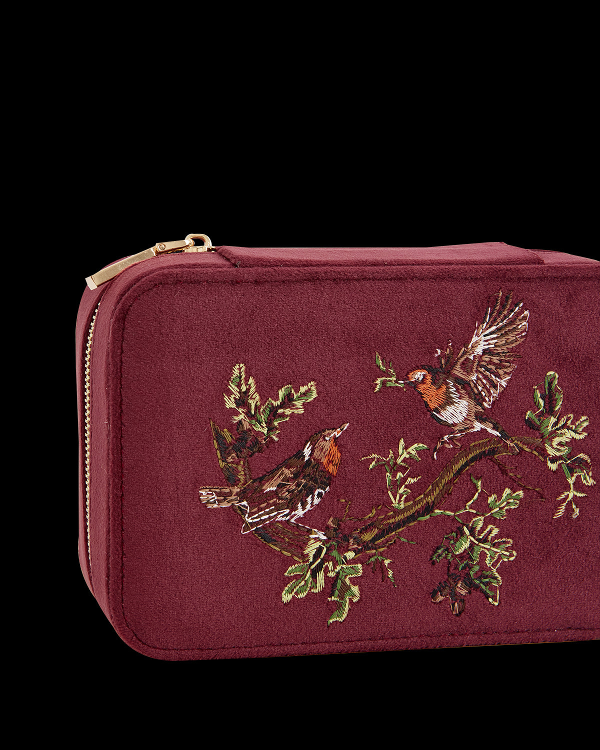 Portagioie Robin Love in Velluto Ribes Rosso Ricamato - Grande