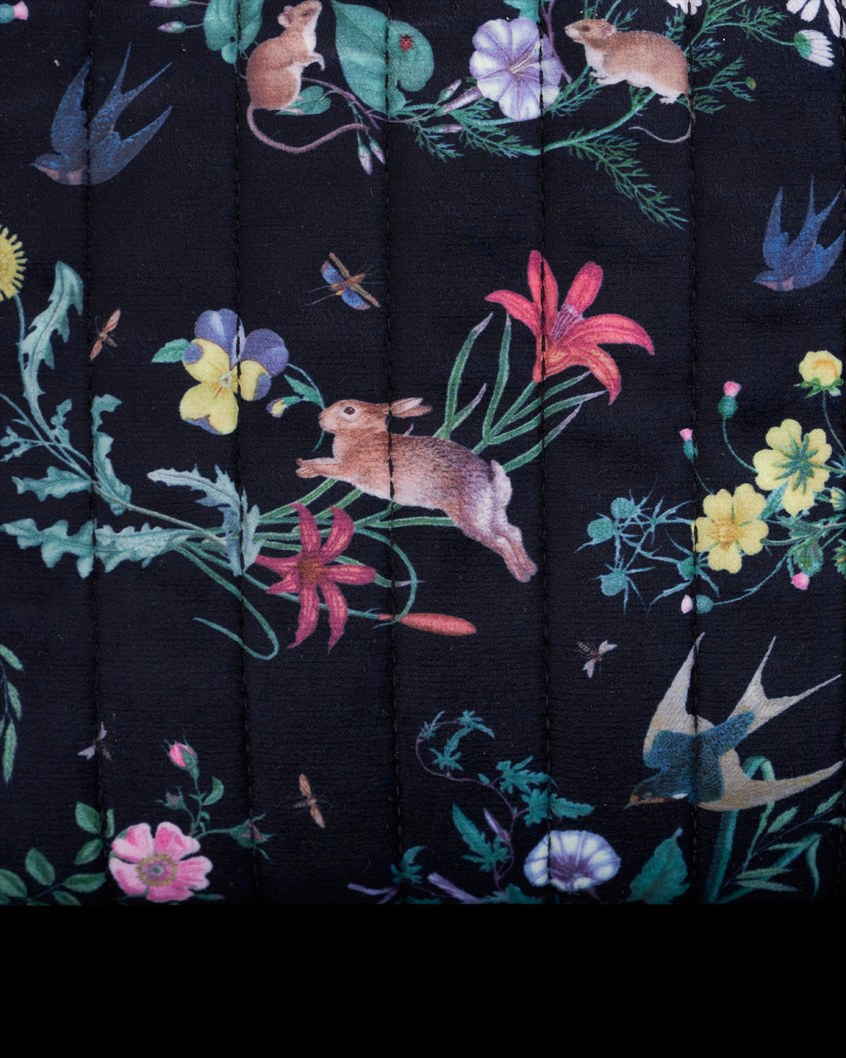 Swallows swoop, bunnies hop, blackbird nestled on her joyful promise of young. Curious creatures gather in celebration of new life, surrounded by bountiful bold blooms, each rejoicing in harmony, announcing Spring is ​in the air.