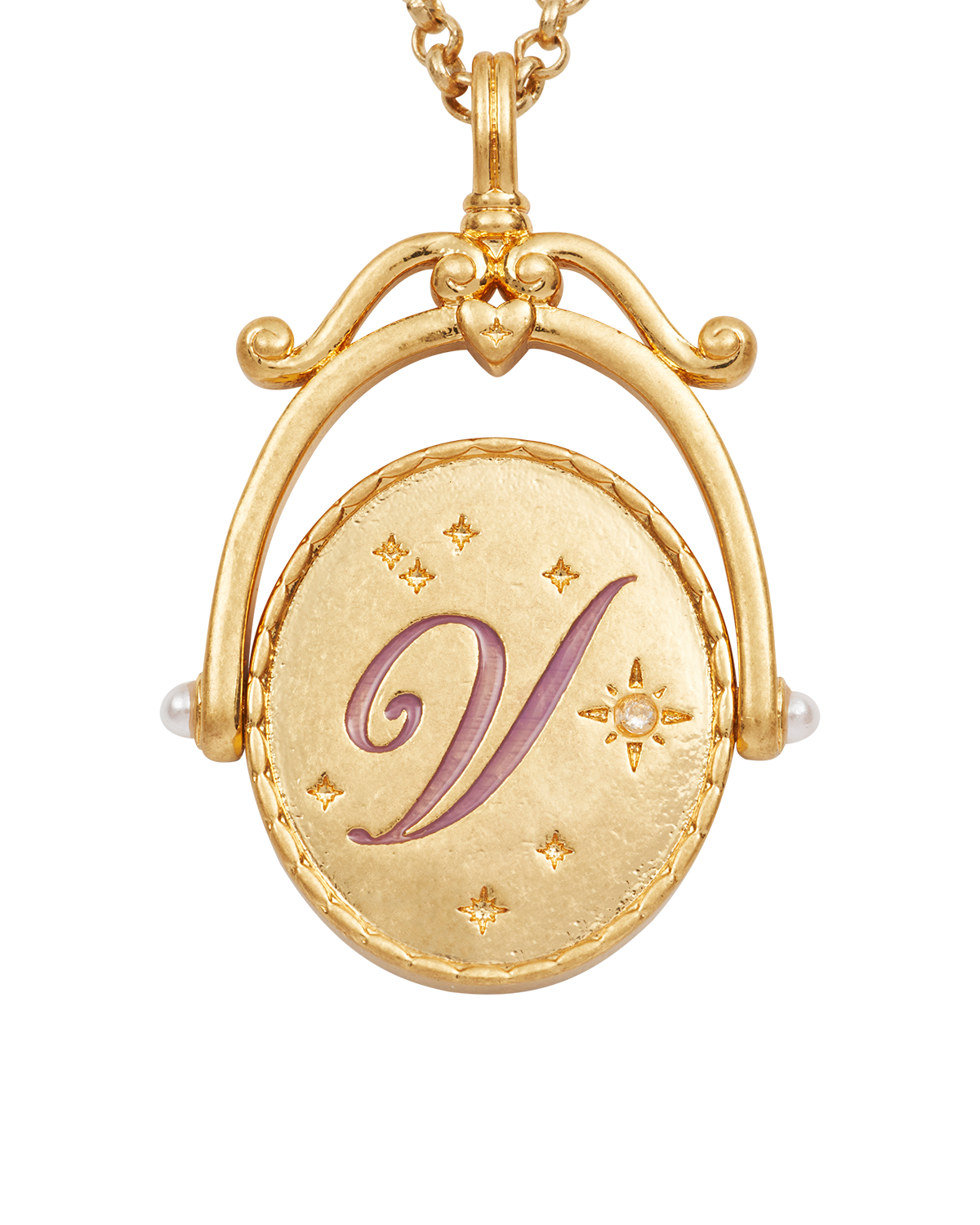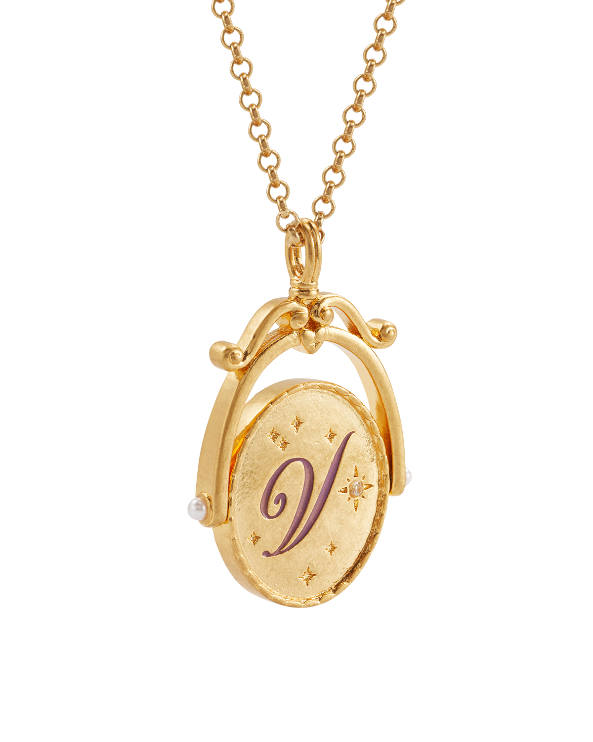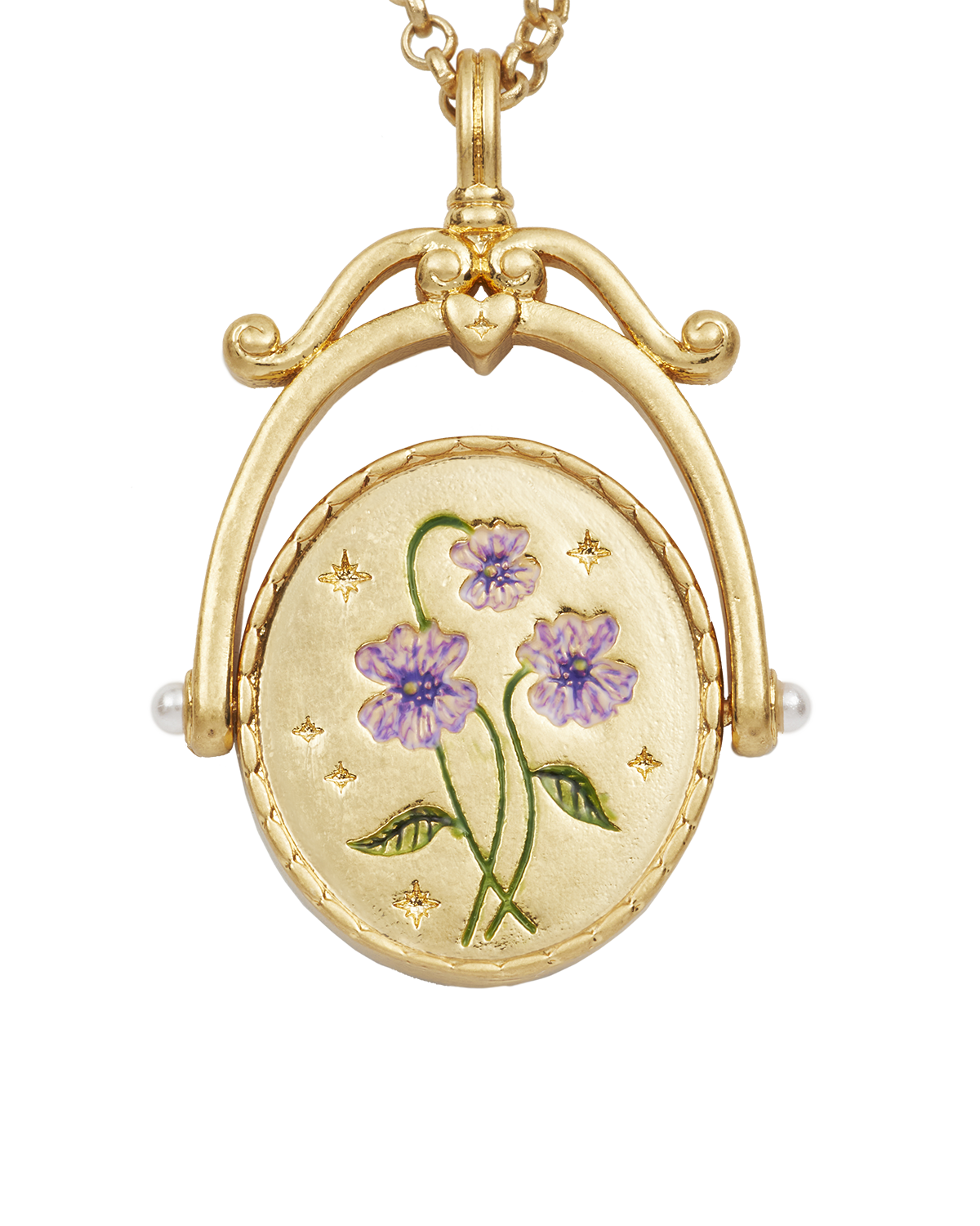 Materiali: ottone placcato oro 22ct, smalto, zirconi bianchi, perla