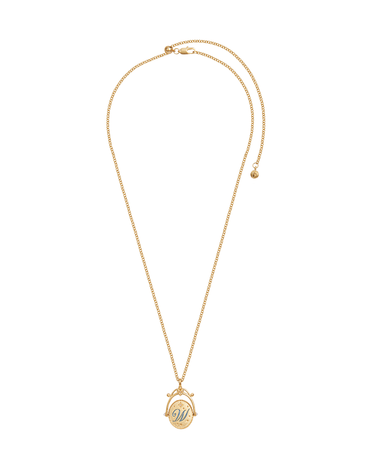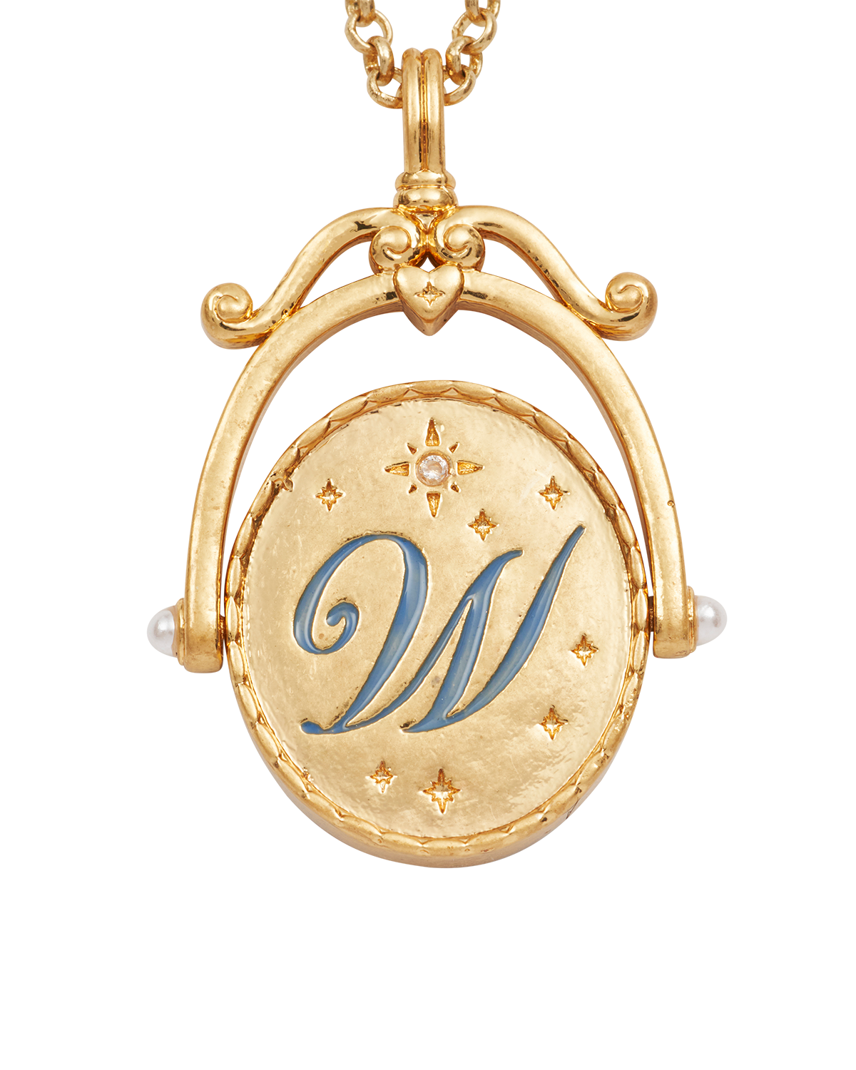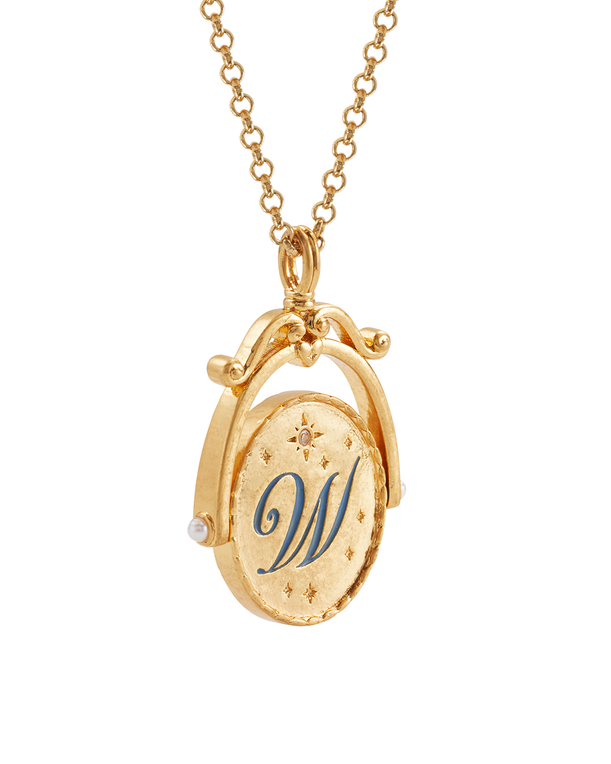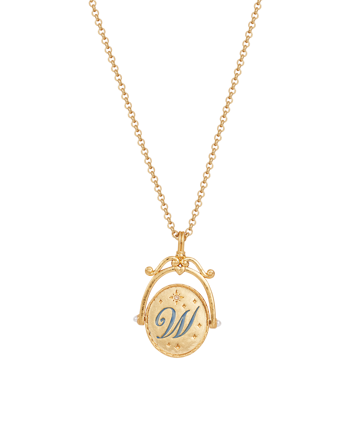 Ciondolo girevole con iniziale "W" e fiore di Water Lily