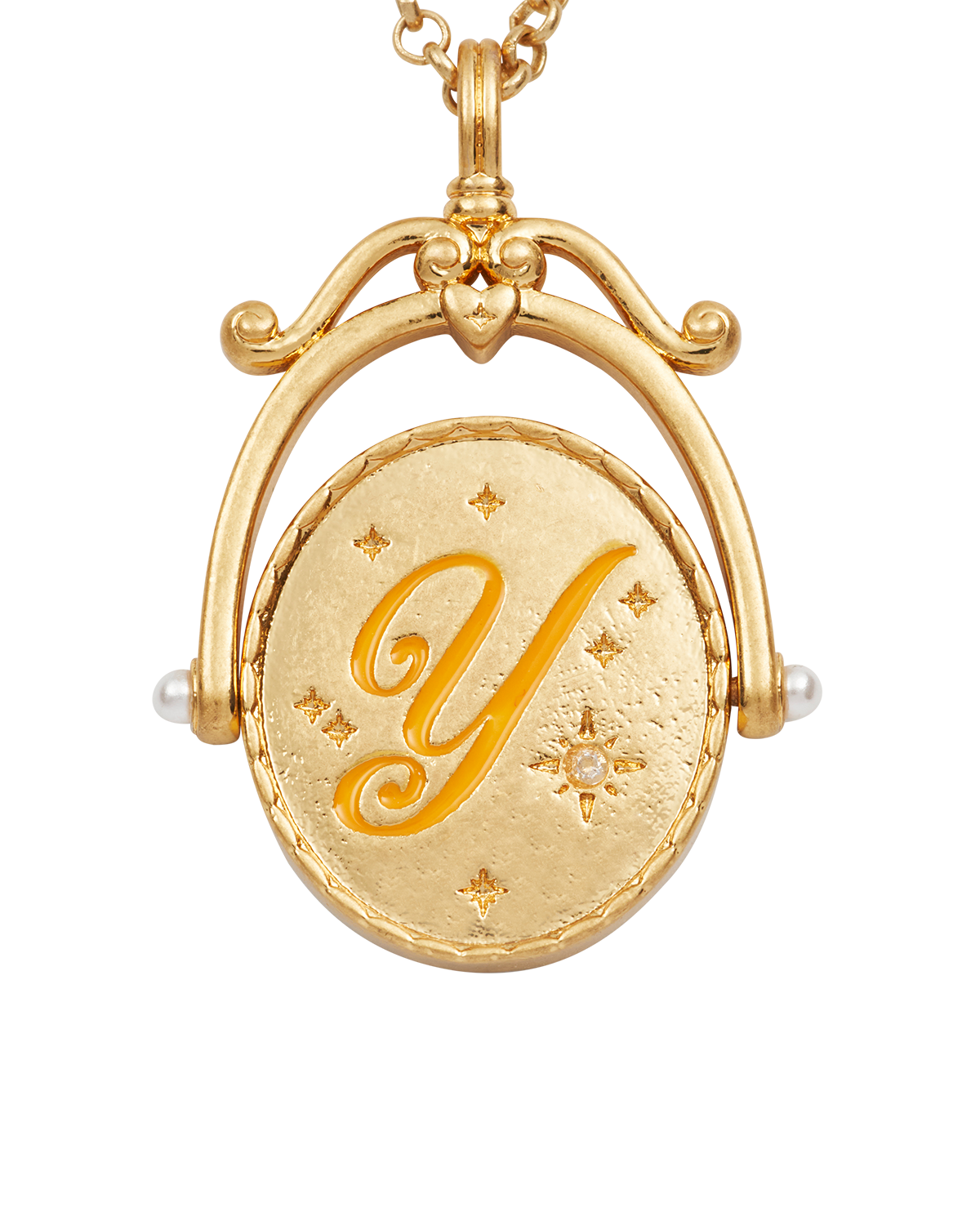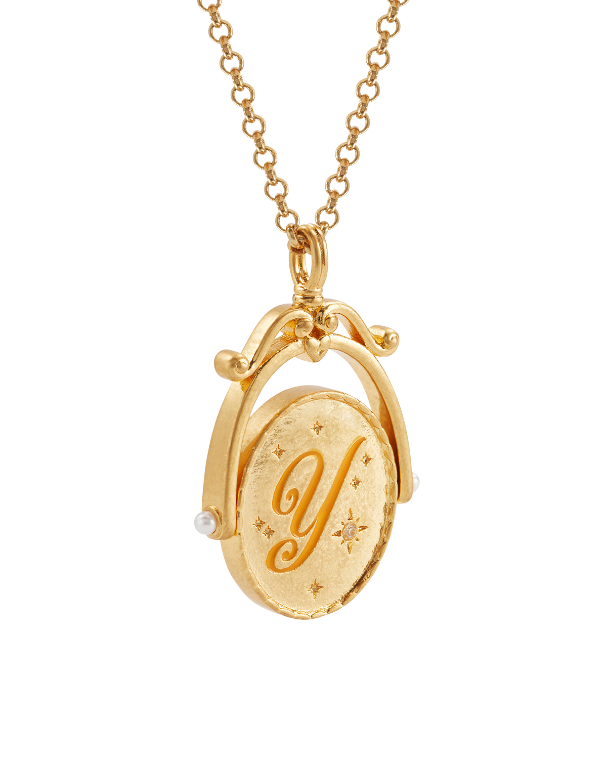 Ciondolo girevole con iniziale "Y" e fiore di Yarrow