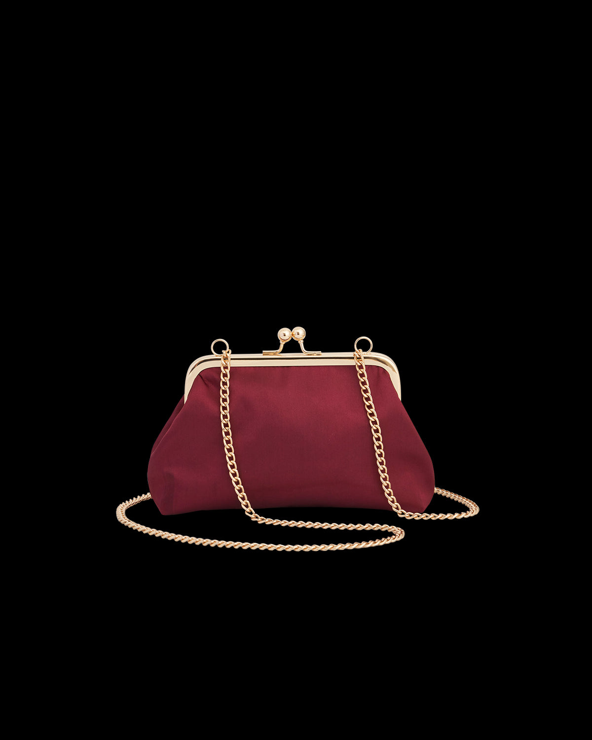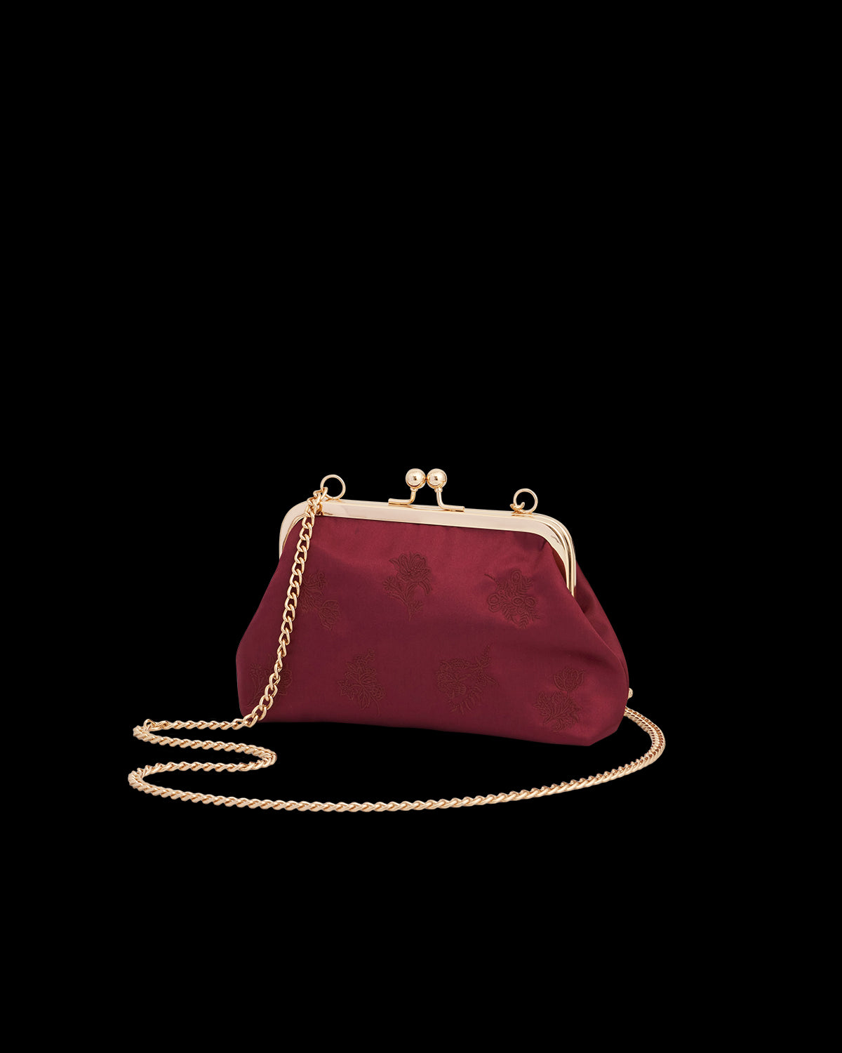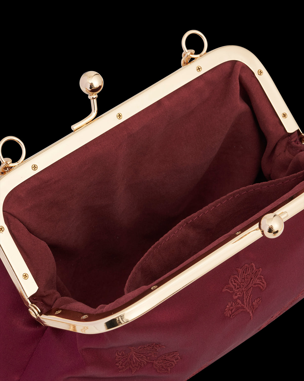 ヴィクトリアーナ 刺繍入り バーガンディ サテン クラッチバッグ