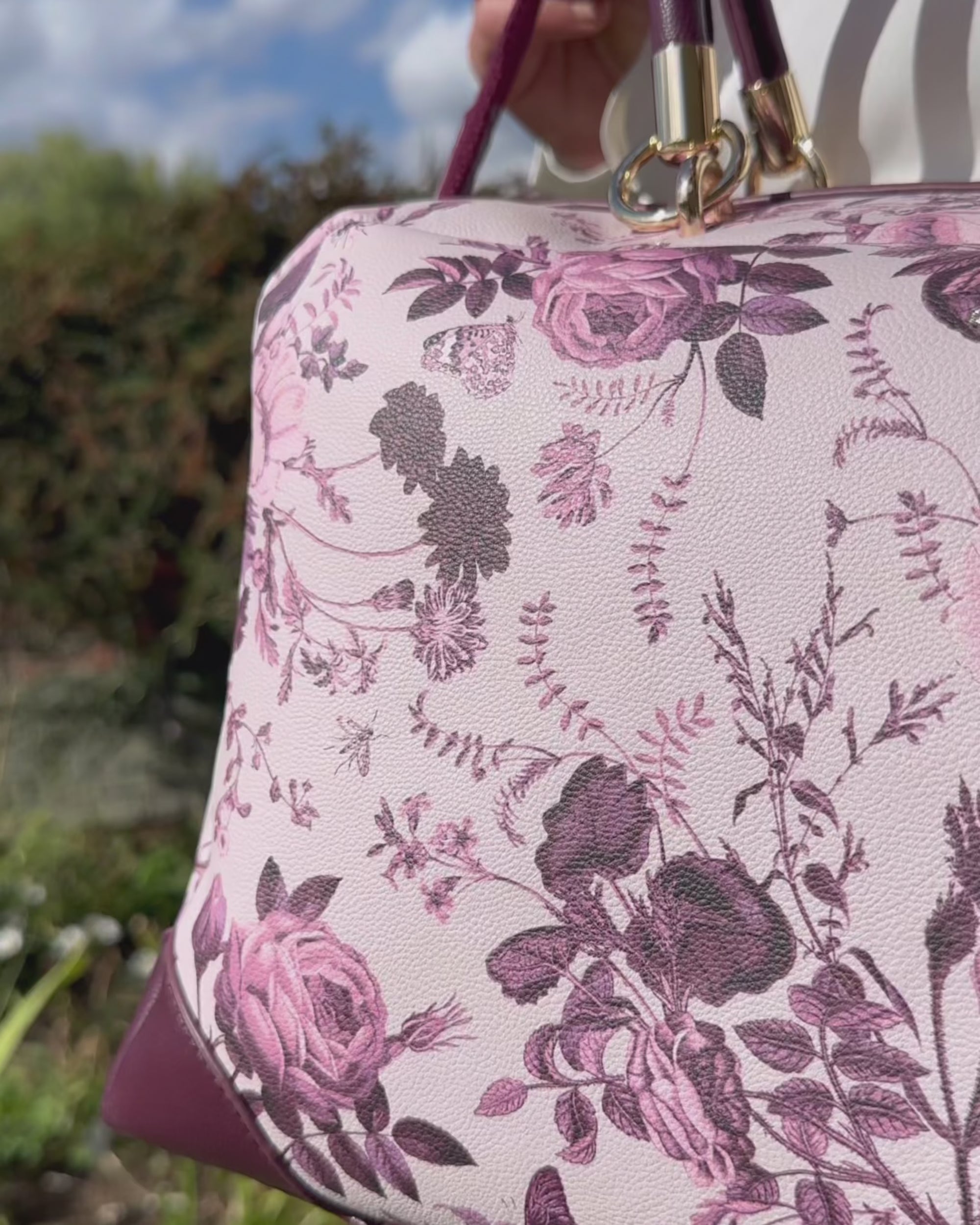 Rambling Rose Tote Bag Burgundy by Fable England